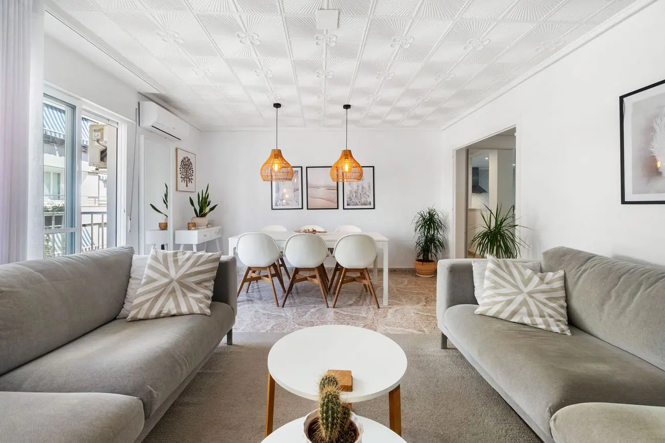 We invite you to familiarize yourself with this unique offer. Elegant, spacious apartment (104m2) on Ramon Gallud Street, one of the most beautiful streets in Torrevieja, a few steps (150m) from the seaside promenade and the sandy beach del Cura! The property is sold fully furnished and equipped, ready to move in. The Scandinavian style interior design stands out among the offers on the Spanish market. The apartment has undergone a major renovation, and the whole thing has been done with exceptional care and attention to detail. We will find such amenities as a spacious modern fully built-in kitchen, with all the equipment, such as a large fridge, dishwasher, oven, new induction hob (5-year warranty), cargo cabinets, drawers with a soft close, heated floor in the bathroom, plus two towel rail radiators, beautifully decorated plaster ceiling! The apartment also has air conditioning with cooling and heating functions for comfort both in summer and winter. Apartment with an area of 104m2 including a 6m2 terrace, consists of a spacious living room with access to the terrace, a separate kitchen, 3 bedrooms and a bathroom, all in a great layout separating the relaxation area from the day zone. Public, free parking spaces under the building. The seaside promenade and the sandy beach del Cura are only 150m away – 2 minutes on foot! In the immediate vicinity there are all possible services and amenities! We sincerely recommend this property to everyone, both for living and as a holiday home, as well as an investment for short-term rental! An intimate community of 10 families, of which two apartments are rented on airbnb. Community fees: 300 euros per year. Property tax: 290 euros per year. Video of the property and its surroundings: (link removed).