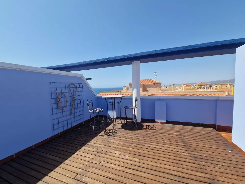 Explore the offerings of this unique duplex penthouse situated right on the seafront, adjacent to Torres Beach. This location provides a serene environment with views encompassing both the sea and mountains. The property extends over two floors for an ample living experience.