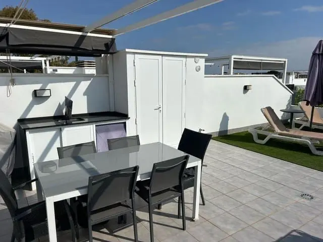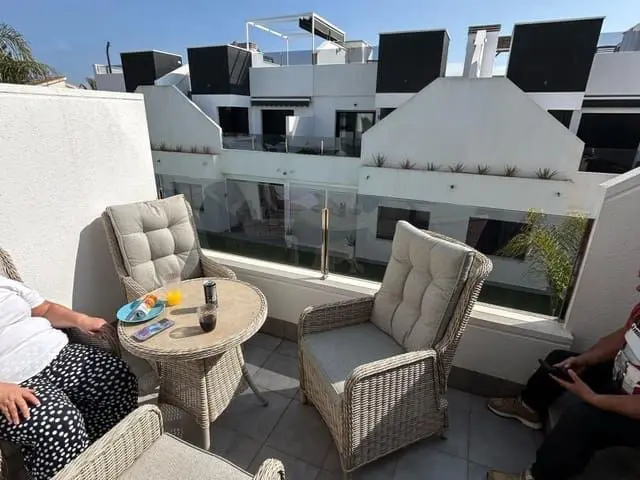 This amazing, top-floor apartment in the sought-after area of Lo Pagán, San Pedro del Pinatar. With its contemporary design and excellent location, this property is perfect for those seeking a stylish home close to the beach. Key Features: 2 Bedrooms and 2 Bathrooms: Includes a spacious master bedroom with an en-suite bathroom and a second bedroom ideal for guests or family. Both bathrooms are finished to a high standard with modern fittings. Private Outdoor Spaces: Enjoy your morning coffee on the sunny balcony or entertain friends on your expansive private roof terrace, perfect for relaxing under the Mediterranean sun. Fully Furnished: The apartment comes tastefully furnished, so you can move in and start enjoying your new home right away. Communal Pool with space for sun beds. Situated within walking distance to the pristine beaches of Lo Pagán and close to local amenities, restaurants, and shops. This property offers the ideal blend of comfort and convenience, perfect as a holiday retreat or a permanent home.