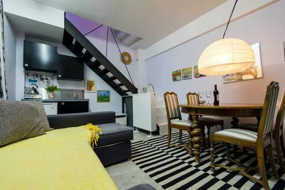 Upstairs, on the first floor of the new section, there’s another 49.30 square meters. This level is divided into two independent rooms, each with its own bathroom. These make up the first floors of the two houses we mentioned. Each of these first-floor units has its own separate metal staircase connecting it to the ground floor.