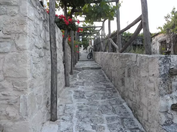 Sarhos is a village that’s part of the larger community of Malevizi in the Heraklion region of Crete. It sits at an elevation of 240 meters, and it’s about 22 kilometers from the city of Heraklion. Back in 2011, the village had 165 permanent residents. Their main livelihoods come from farming, specifically viticulture (grape growing) and olive growing, along with other fruit trees. They produce raisins, olive oil, and table grapes. To the west of the village, you can find the historic Sarhos Cave, which is quite extensive, stretching for 2 kilometers and plunging 225 meters deep. The built-up area within the village limits is quite dense, with many of the buildings being older and constructed primarily from stone.