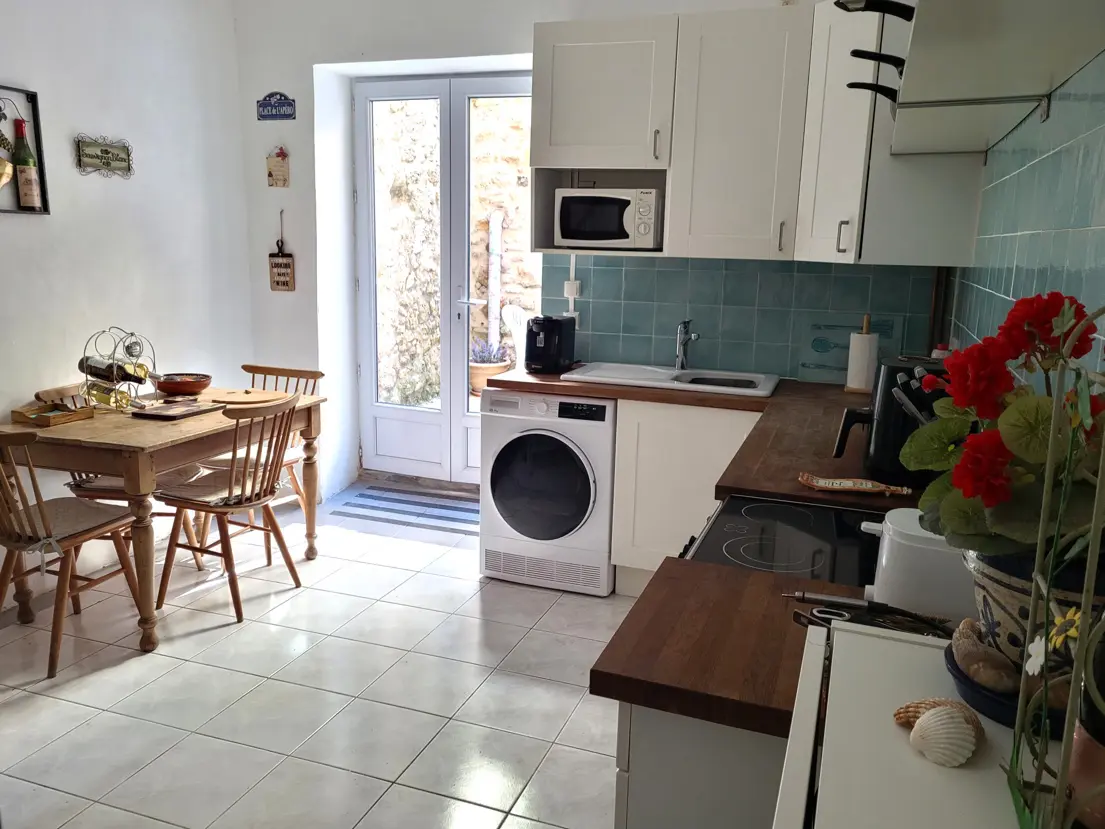 Ground = 11.5 m2 fitted kitchen (wall and floor units,electric oven with hob, new fridge/freezer, new tumble dryer,washing machine and microwave ) with direct access to private 8.5 m2 courtyard with furniture and barbeque.