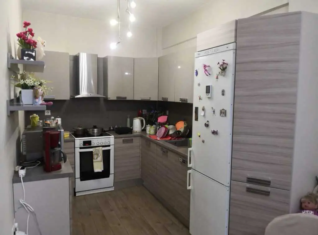 For sale apartment of 110 sq.meters on the Olympic Coast. The apartment is situated on the 2nd floor. It consists of 3 bedrooms, living room with kitchen, one shower WC. Flat has front layout. A view of the city opens up from the windows. There are: solar panels for water heating, air conditioning, awnings, heating. Building has an elevator.