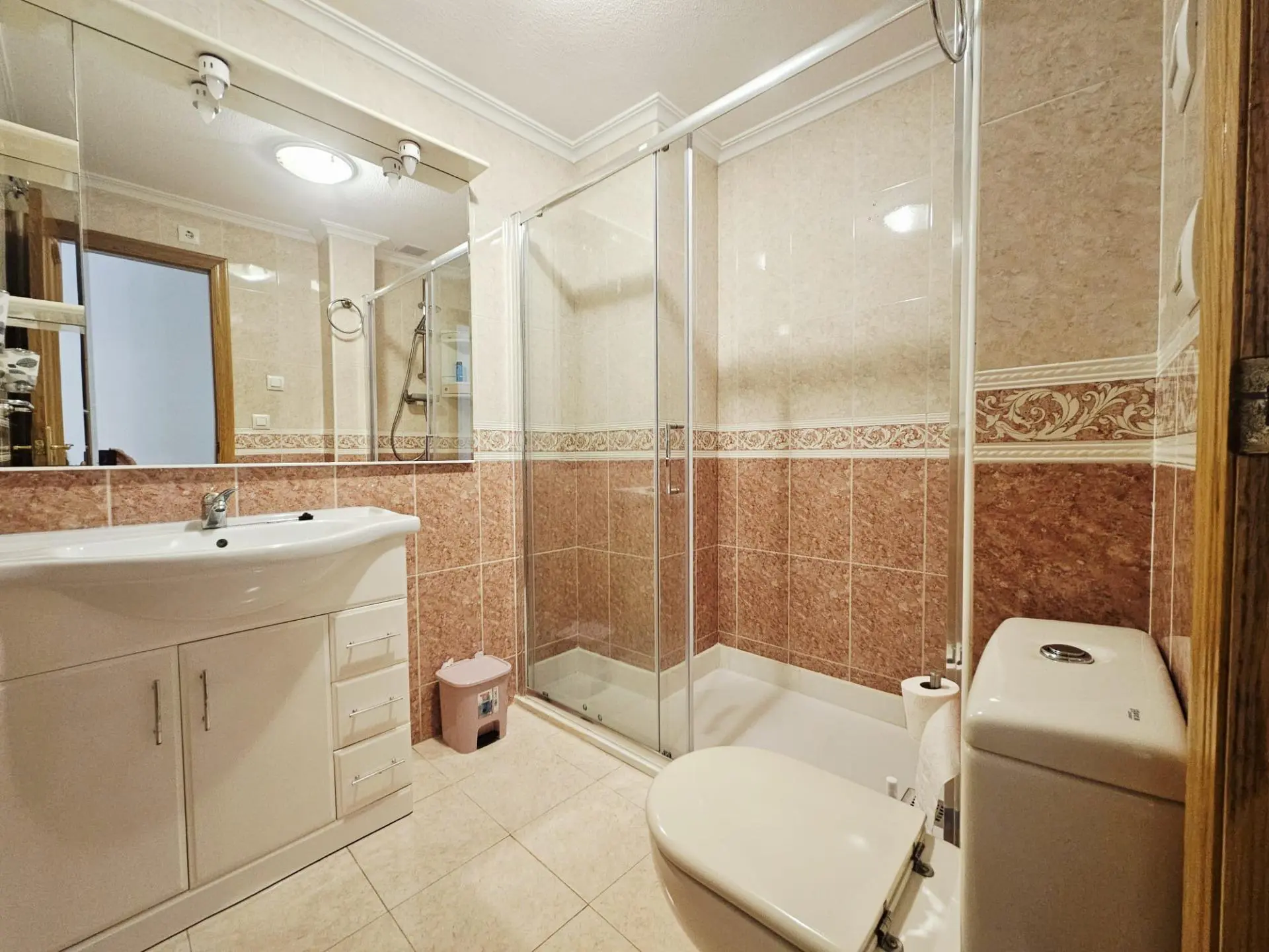 Apartment in the heart of Torrevieja’s city center, in La Ermita, at 20 Zoa Street, designed for those seeking the convenience of the city combined with private spaces to enjoy the sun and Mediterranean lifestyle without complications. This home captures the vibrant essence of Torrevieja, where every day is lived with everything essential close at hand: markets, shops, bars, and the friendly, ever-present buzz of the neighborhood. It’s the kind of place that invites you to linger, make spontaneous plans, and feel that your home is the perfect base from which to explore the coast and its rhythms. From the first glance, the terrace reveals itself as the open soul of the home, a space that transforms with each passing day. In the morning, it becomes the ideal spot for a leisurely breakfast, with the sun gently filtering in as you plan your day, read the newspaper, or answer emails with a steaming cup in hand. On warm afternoons in Torrevieja, when the heat invites you to pause, this is the perfect place to set up a light table, comfortable chairs, and let the hours drift by in conversation with family or friends who drop by unexpectedly. The breeze from the town center, with its blend of aromas from freshly baked bread and the nearby sea, makes this outdoor space feel alive, connected to the neighborhood without losing its own private feel. The solarium elevates this experience to another level, offering an elevated refuge where the Costa Blanca sun can be enjoyed to its fullest. Imagine entire afternoons lying down with a book, relaxing sessions with soft music, or informal gatherings where the urban skyline blends seamlessly with the clear sky. It’s the place for those moments of total disconnection, where you can sunbathe, meditate, or simply watch as day gives way to night with the city center lights illuminating the landscape. In Torrevieja, where good weather is the norm, this space is used almost year-round, becoming a natural extension of the home that multiplies the possibilities for daily enjoyment. Upon entering the common area, the separate kitchen acts as a discreet yet essential hub, a dedicated space for preparing meals calmly and undisturbed. Here, daily rituals unfold: the aroma of a slow-simmering stew for family dinner, a quick check of ingredients for an impromptu weekend paella, or the organization of the weekly shopping trip in preparation for the day’s hustle and bustle. Its separate location allows it to be a space for concentration when needed, yet always accessible for anyone who wants to help or chat while cooking. In the heart of La Ermita, where life moves quickly outside, this kitchen offers a welcoming contrast, a place to cook with pleasure and without haste. The living area opens up as the social heart of the house, a spacious environment where routines and plans converge. It’s easy to envision a large sofa facing the television for binge-watching, a central table for shared meals, or a cozy corner with armchairs for long conversations. Natural light streaming in from the terrace illuminates everything, making the space feel bright and inviting even on cloudy days. This is where you’ll find get-togethers with friends passing through the neighborhood, afternoons of playing with the kids, or even hours of remote work on your laptop—all with the advantage of being right in the heart of the city center, where a stroll is just minutes away. The three bedrooms offer complete flexibility to suit any lifestyle. The master bedroom could be your personal retreat, with space for a large bed, ample closets, and details that make it feel like a private sanctuary after a day exploring Torrevieja. The other two lend themselves to a variety of uses: bedrooms for children growing up and independent, spaces for frequent visitors, or even a bright home office for studying or running a business.