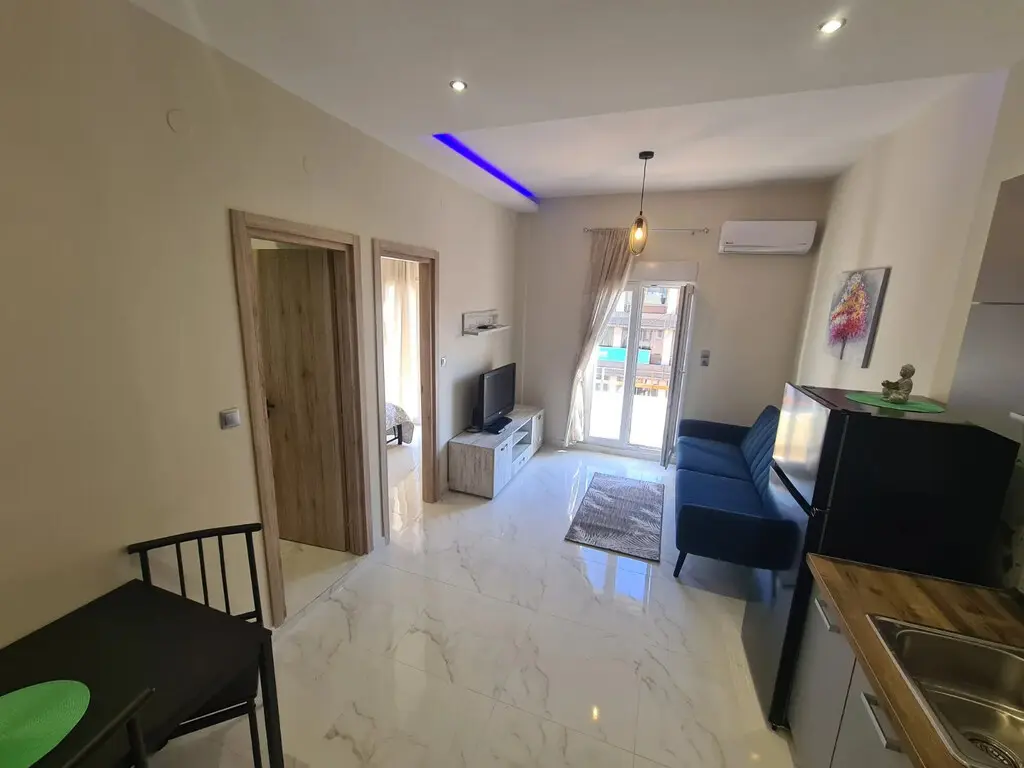 For sale apartment of 45 sq.meters in Thessaloniki. The apartment is situated on the 6th floor. It consists of one bedroom, living room with kitchen, one shower WC. Flat has front layout. There are: solar panels for water heating, air conditioning, heating. The owners will be leaving the furniture with the sale. Building without elevator.
