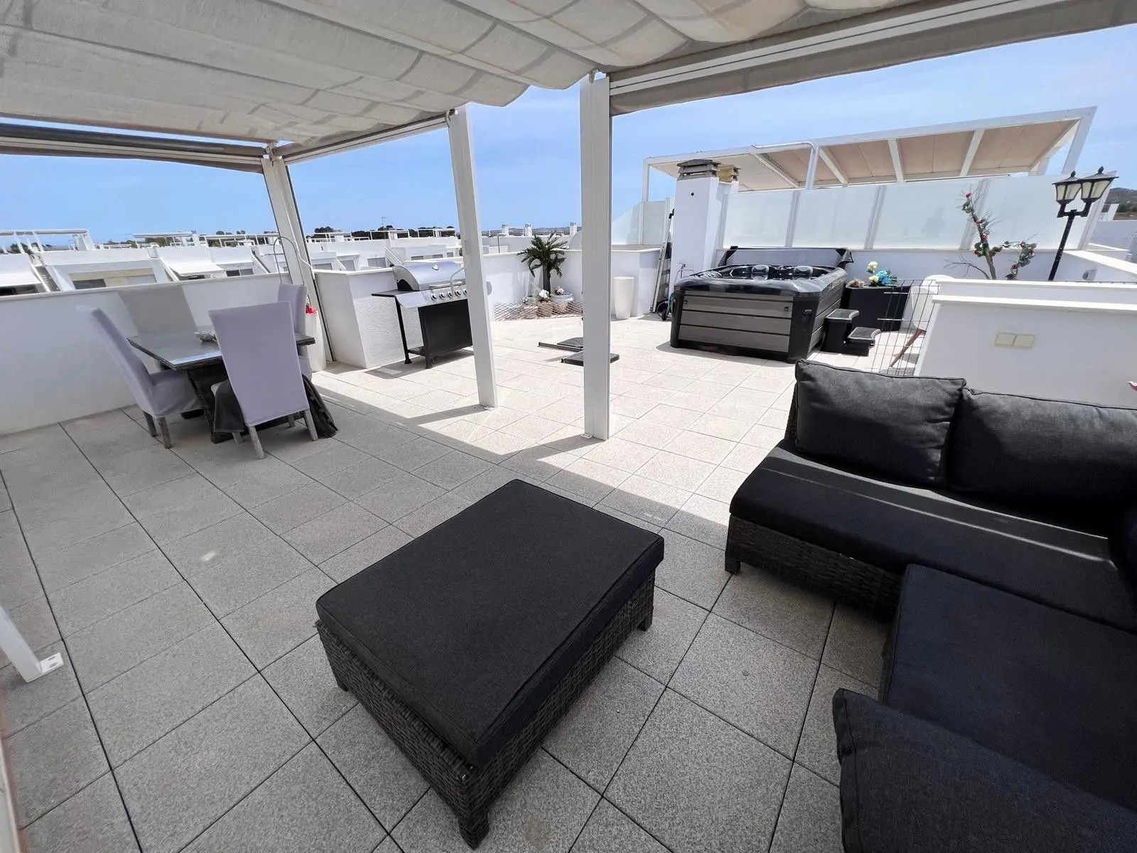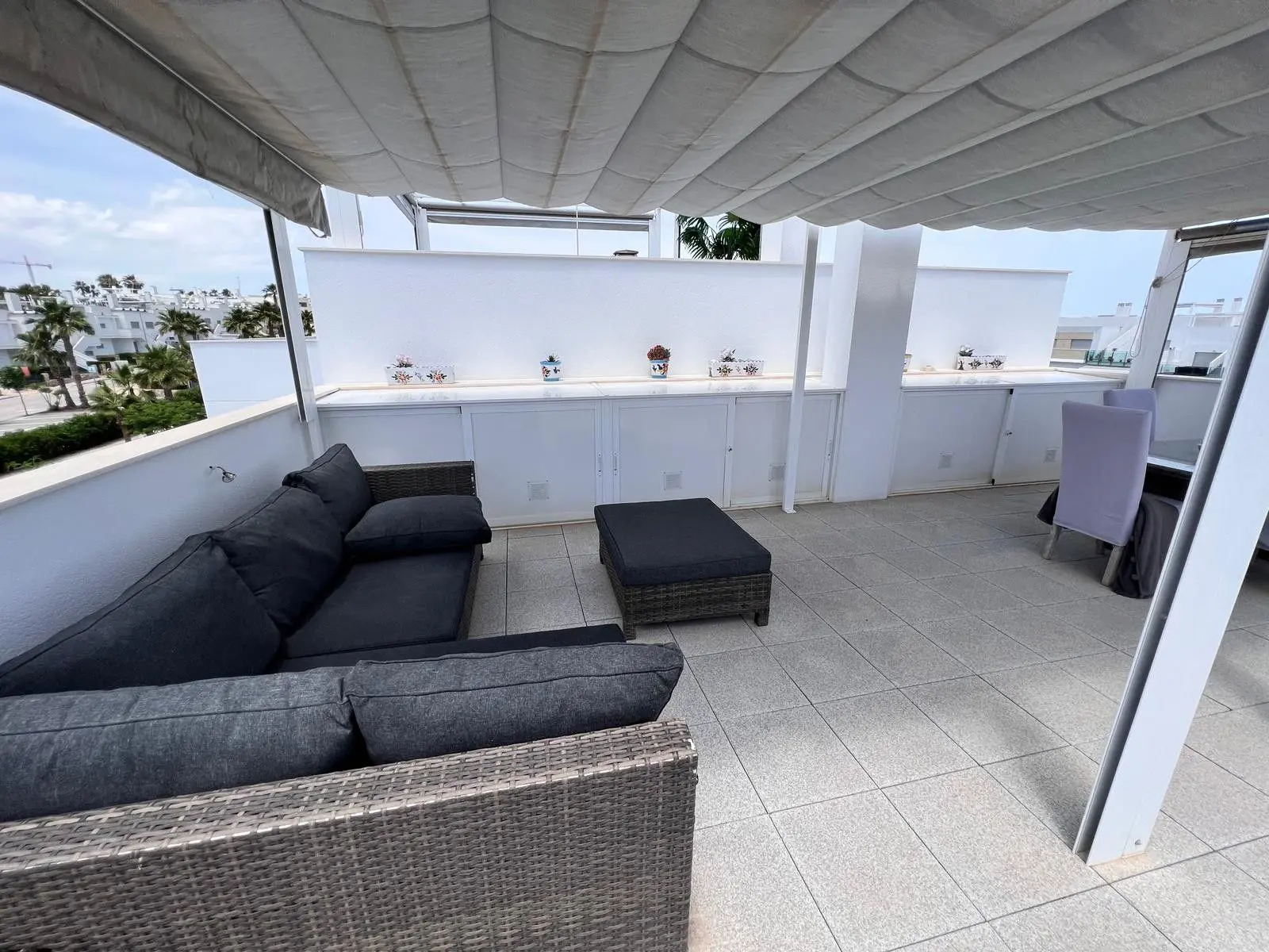 Located in one of the most sought after areas of the Costa Blanca, this bright first floor apartment offers comfort, style and a great location in the Vistabella Golf – Entre Naranjos residential complex. The property consists of two bedrooms with fitted wardrobes, two bathrooms and a modern, fully equipped open kitchen. The living/dining room opens onto a pleasant and spacious private terrace where you can enjoy the Mediterranean climate and the beautiful views of the communal gardens and swimming pool. The property also has a large private solarium, ideal for sunbathing, dining and relaxing. There is a solar-powered Jacuzzi on the solarium to relax at the end of the day. The house has air conditioning, anti-burglary door, intercom and is sold partly furnished. The property is located in a well maintained complex with access to a communal pool and green areas. Private parking included in the price. Just a 5 minute walk to bars, restaurants and supermarkets 5 minutes from Vistabella Golf Course 20 minutes drive from the beaches 40 minutes from Alicante airport Ideal as a holiday home, investment or permanent residence.