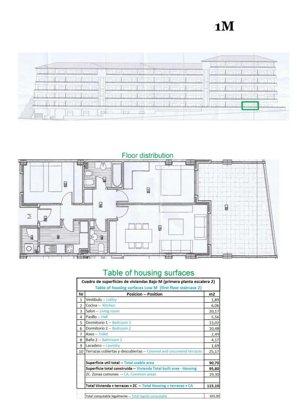The building has 7 floors with 2 stairs and its 2 elevators. In the basement there are 69 parking spaces and 42 storage rooms. On the ground floor is the heated indoor pool, a large room for the use of all owners and two commercial premises, on the roof is the outdoor pool with its terraces.