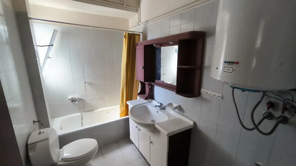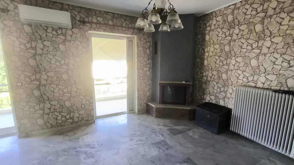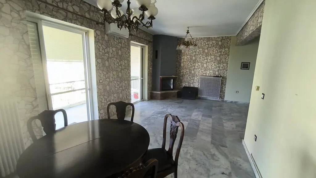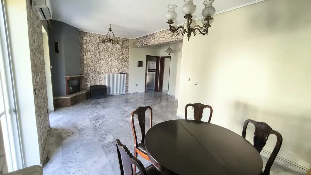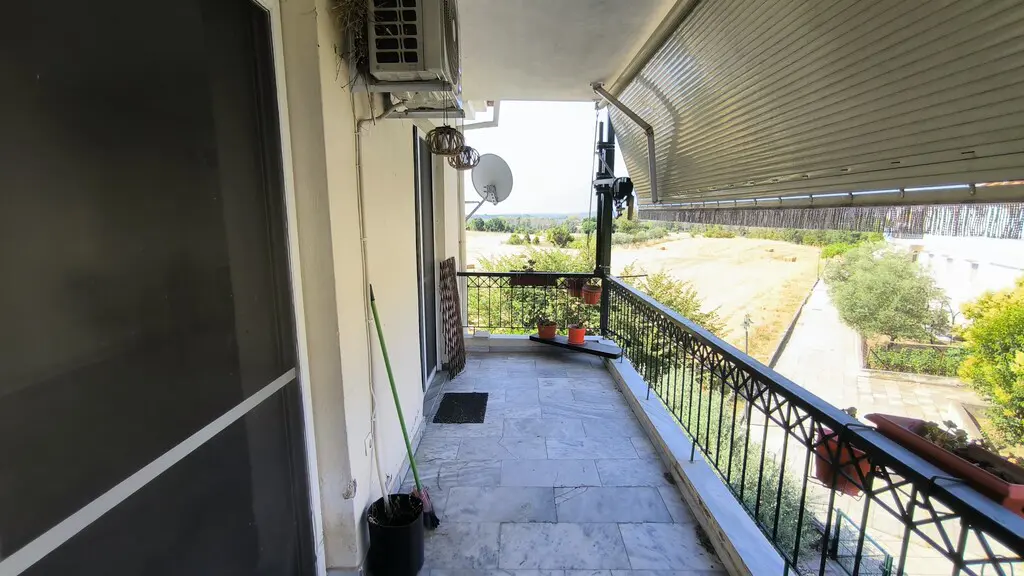 From the windows of the apartment, one can see views of the city and the mountains. The property is equipped with several features to enhance comfort and utility. These include solar panels specifically for water heating, a fireplace, air conditioning units, awnings, and a heating system.
