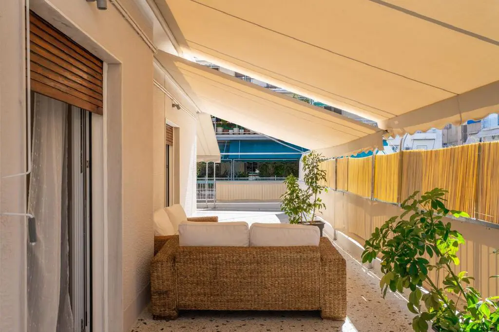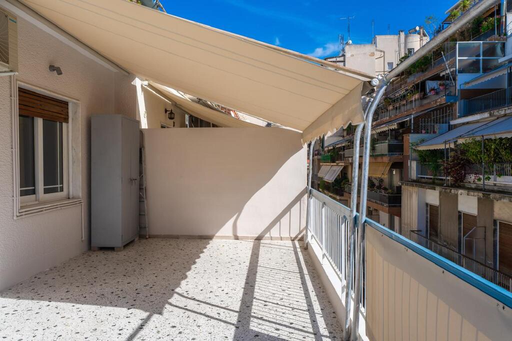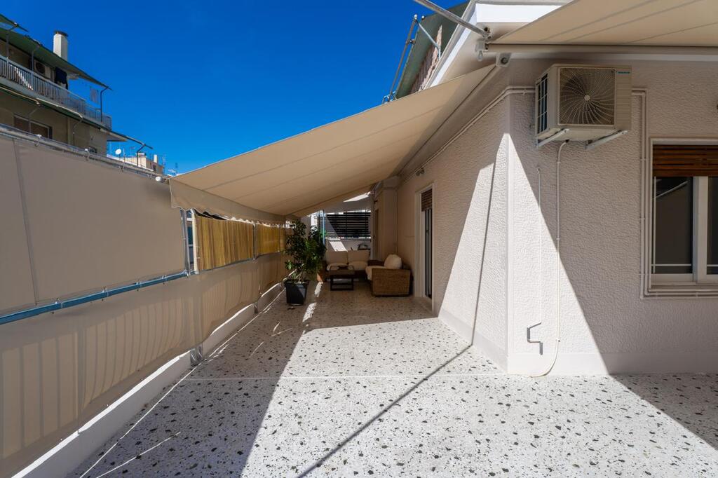 For sale apartment of 98 sq.meters in Athens. The apartment is situated on the 3rd floor. It consists of 2 bedrooms, living room, one kitchen, one dining room, one shower WC, one WC, one storeroom. Flat has front layout. The property offers a roof garden. A magnificent view of the city opens up from the windows. There are: solar panels for water heating, air conditioning, awnings, heating. The owners will be leaving the furniture with the sale. Building has an elevator. Extras included with the property: parking space.
