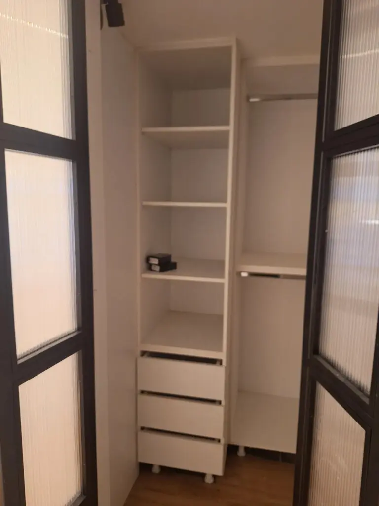 The front layout of this flat is designed to maximize the use of space. Air conditioning and heating systems are installed, which can be beneficial for comfort throughout the year. The convenience of an elevator in the building enhances accessibility, especially for moving in and out, or simply for bringing home groceries.