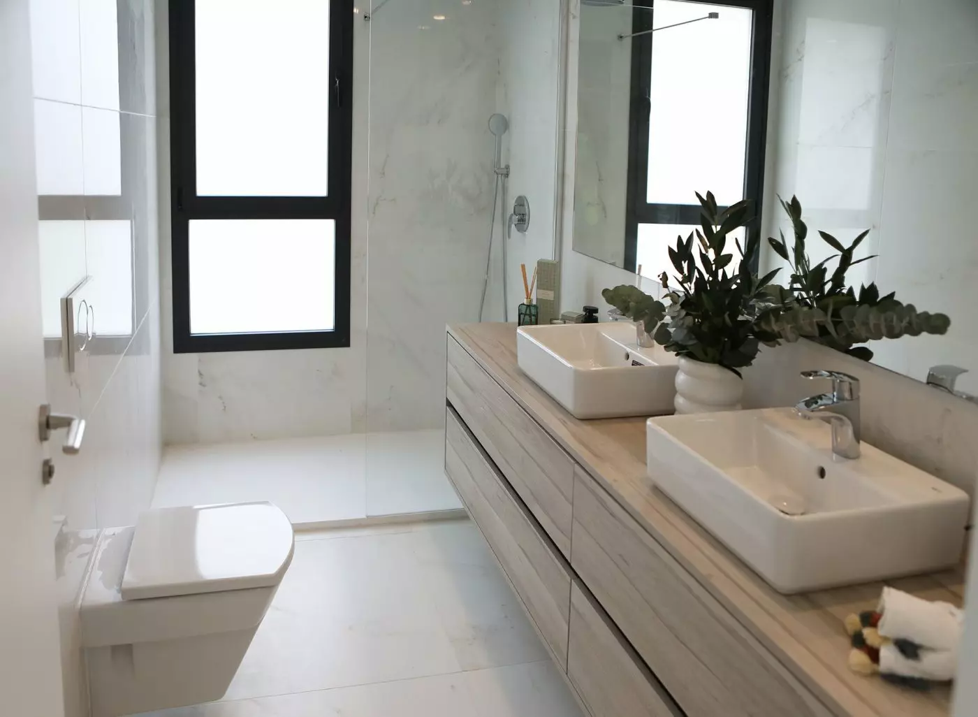 Each residence is designed for modern living. The properties come equipped with essential appliances including a hood, oven, and touch-control induction hob. You’ll also find a refrigerator, dishwasher, and washing machine included, along with pre-installation for a dryer and microwave. The bathrooms feature safety glass shower screens, mirrors, and LED spotlights for effective lighting.