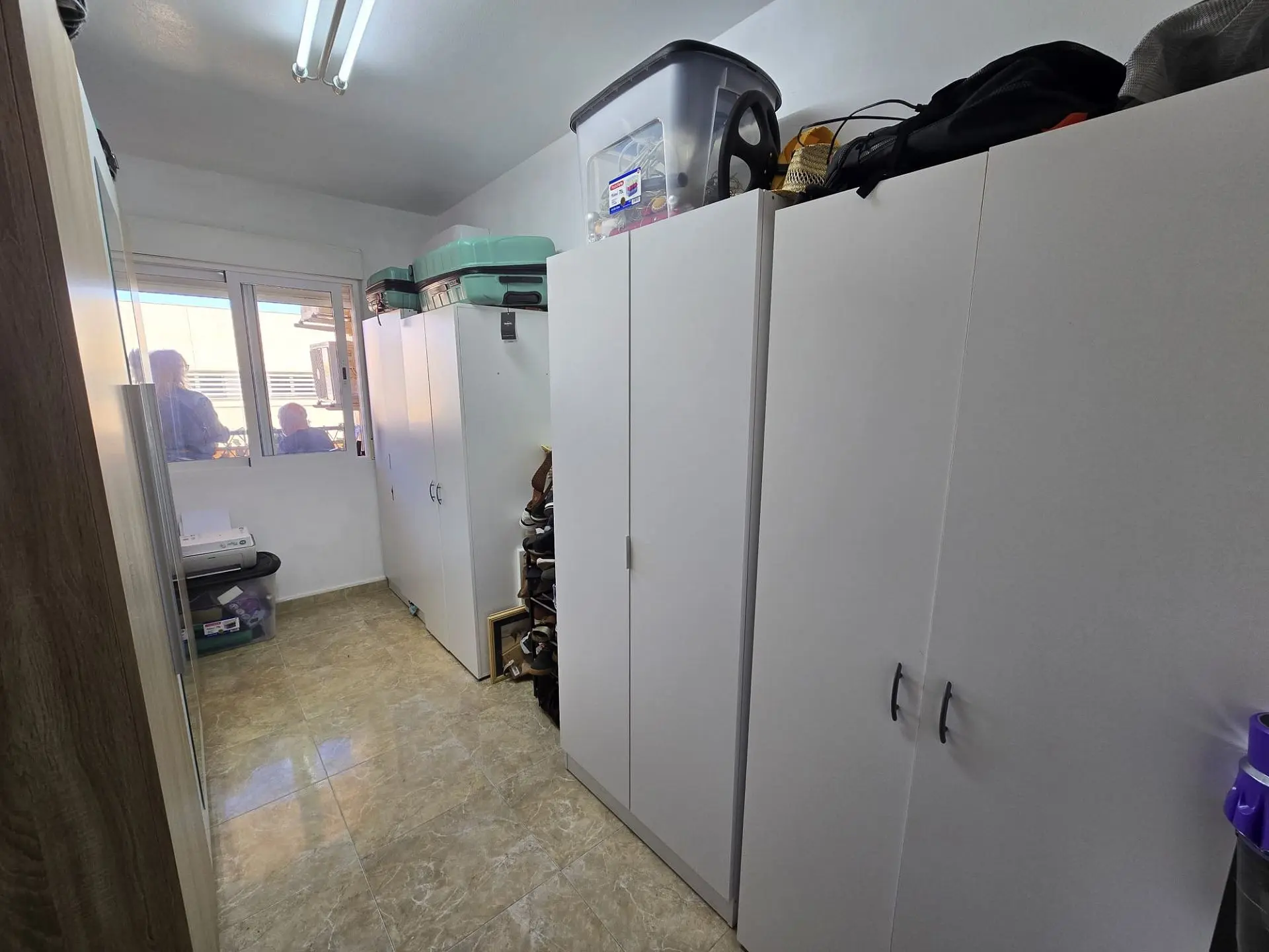 This apartment for sale in Fortuna, Murcia, is located on the first floor of a building that is accessible by a lift. It offers views of the surrounding mountains and includes a large private outdoor area, a garage space, and a storage room.