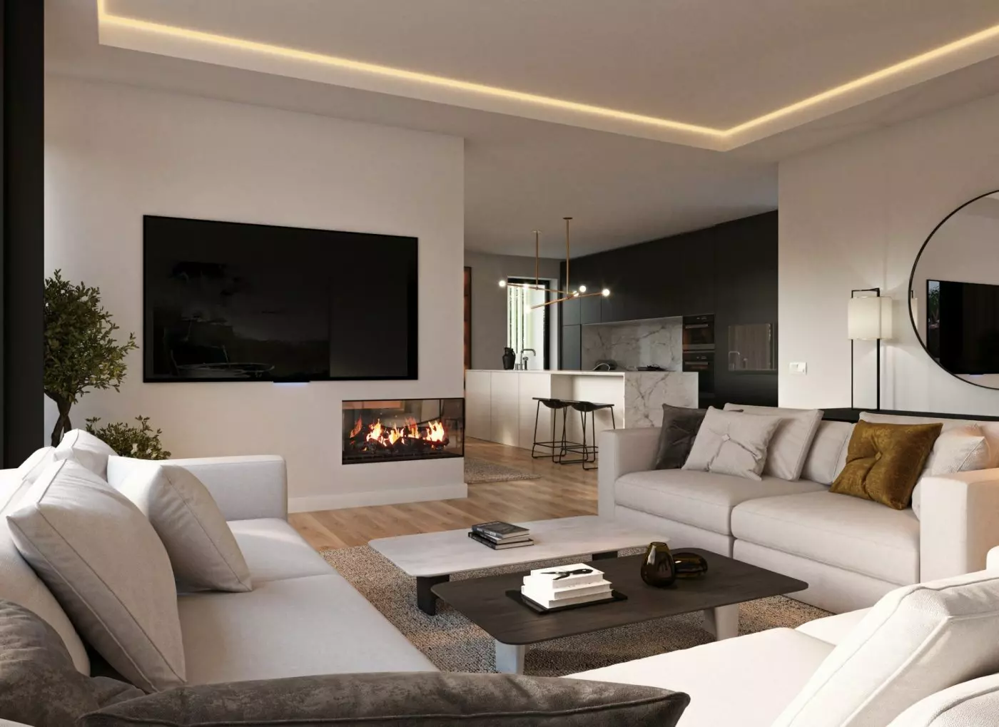 Each apartment offers direct access to south-facing terraces from both the bedrooms and the living room. This layout allows for a seamless connection between indoor and outdoor spaces. The open kitchen, dining area, and living room benefit from abundant natural light due to large windows that overlook the communal area and green surroundings. Each unit also includes a designated parking space and a private storage room in the basement.