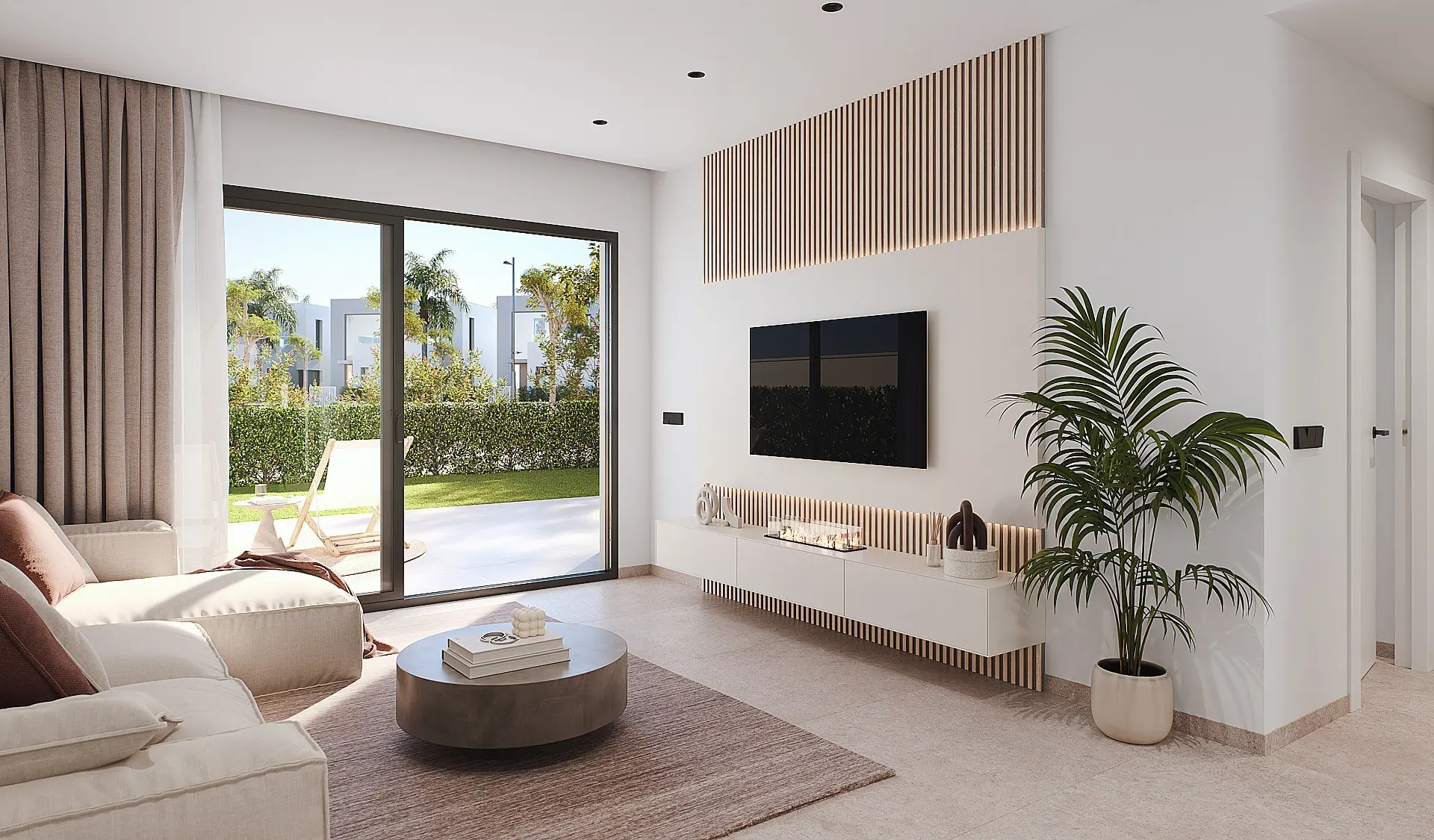 The residential complex consists of three blocks with 14 apartments in each. Each unit features either a garden or a private balcony that overlooks this expansive area. The architectural design incorporates modern aesthetics while using high-quality materials. This development stands out as the first of its kind on Costa Calida, making it a noteworthy choice for potential homeowners.