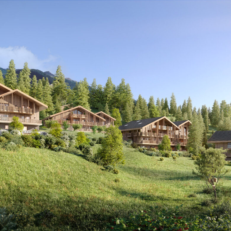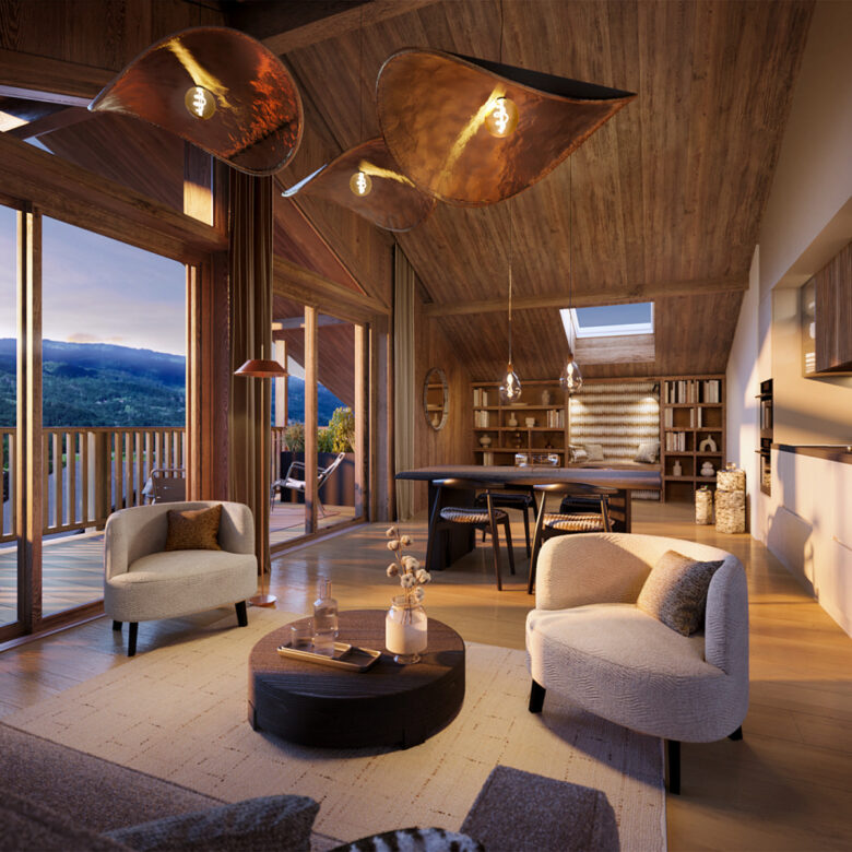 This house spans 42 m² on two sides and includes two bedrooms, a bathroom, and a living area with an open-plan kitchen. A covered terrace and a small courtyard of approximately 40 m² complete the layout. The design prioritizes practicality while also ensuring privacy, as the courtyard is not overlooked.