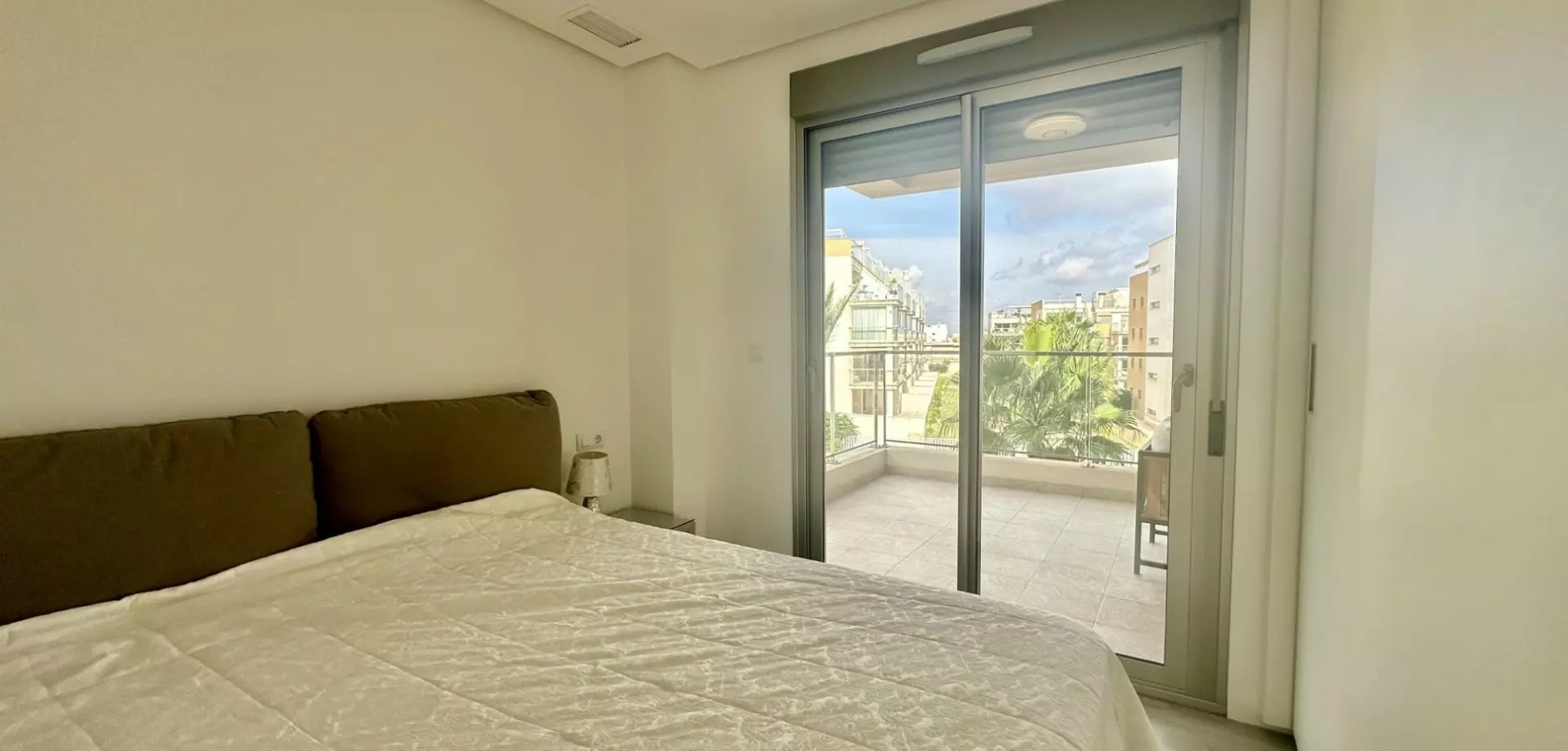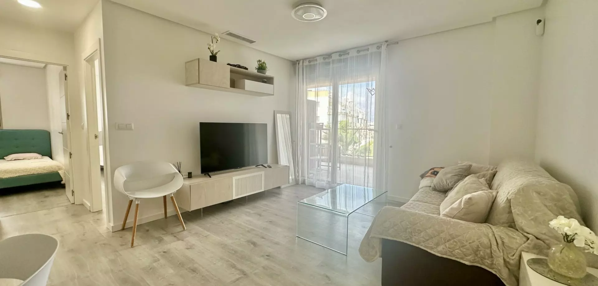 Today, let’s explore an interesting opportunity in the Green Hills residential complex, located in Villamartín, Orihuela Costa. This apartment is situated on the second floor of block 5 and presents a mix of modern Mediterranean living and convenience.