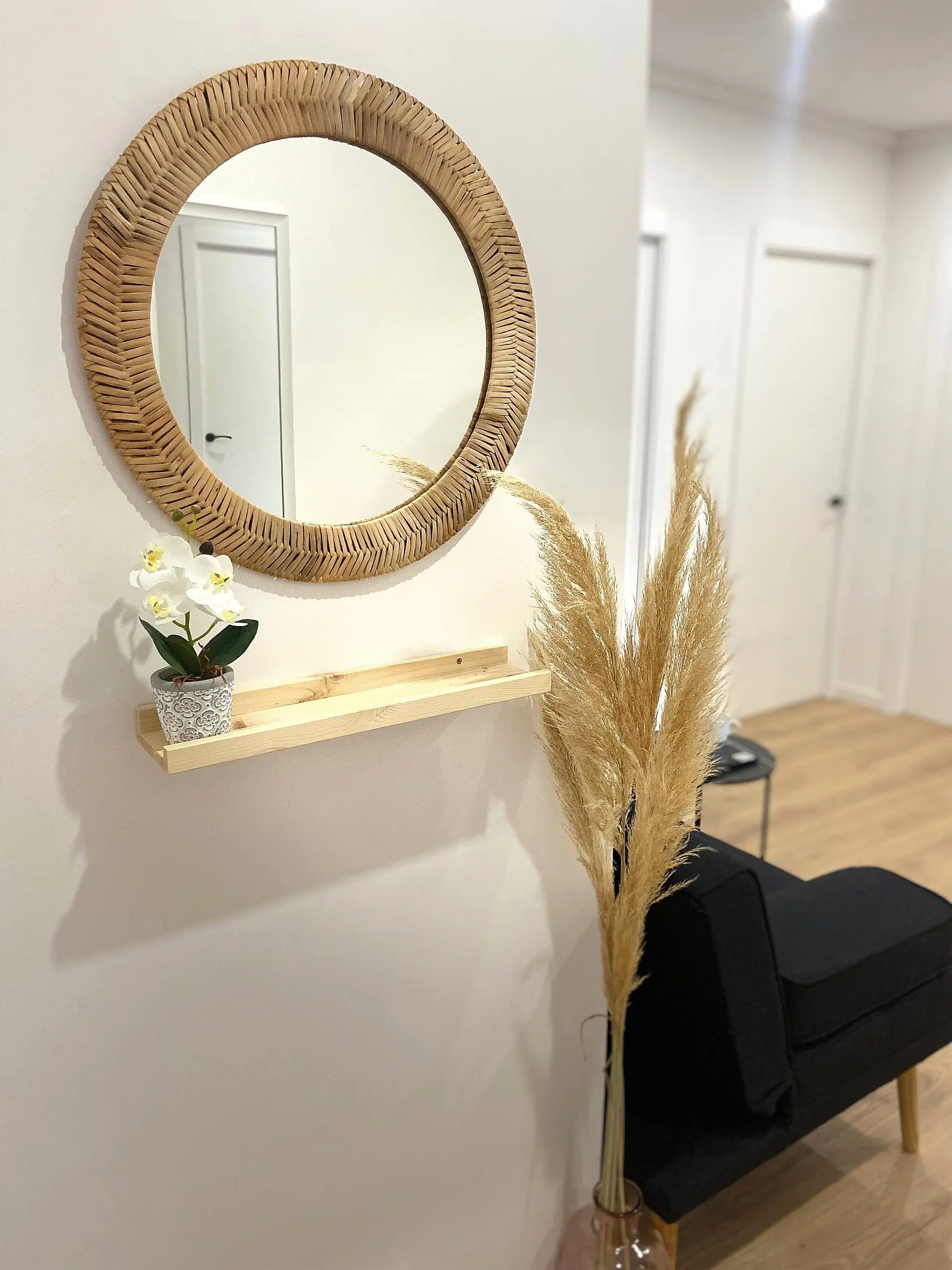 It incorporates Japandi-inspired decoration, merging minimalist approaches with natural elements.