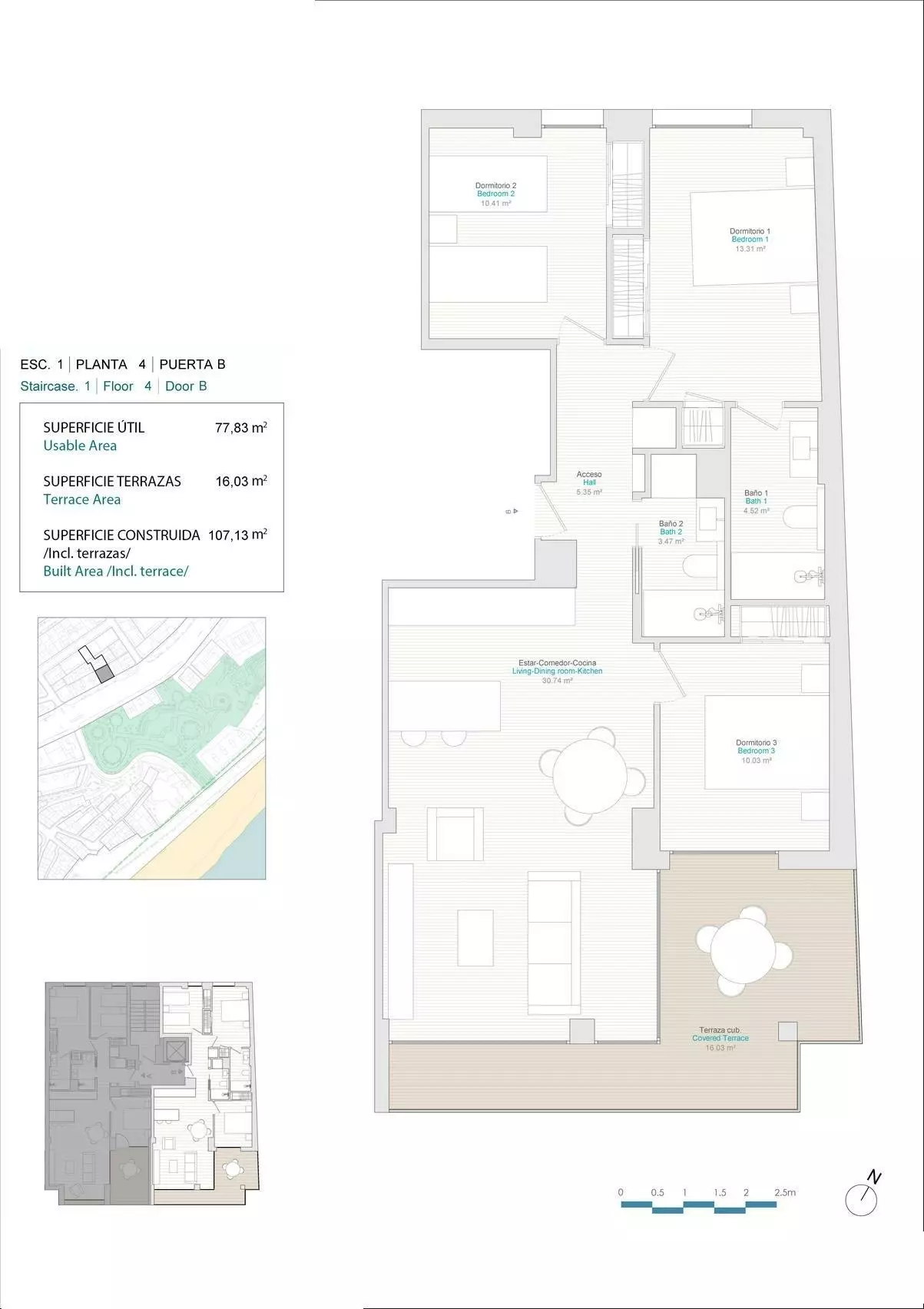 These modern apartments come in various sizes, including 1, 2, and 3-bedroom options. Each unit features an open plan kitchen that connects seamlessly to the living area, making it functional for daily living. Built-in wardrobes offer convenient storage solutions while terraces provide an outdoor space for fresh air. Additionally, a domotic system is included for enhanced home automation.