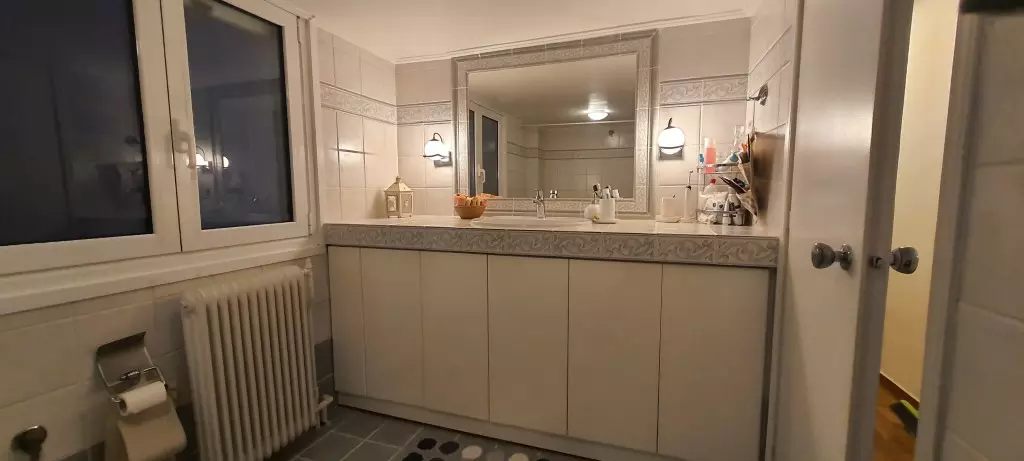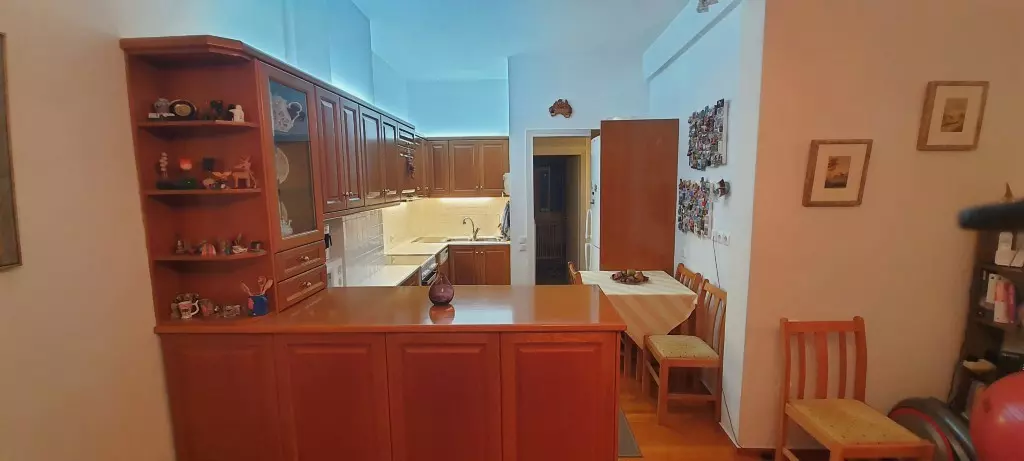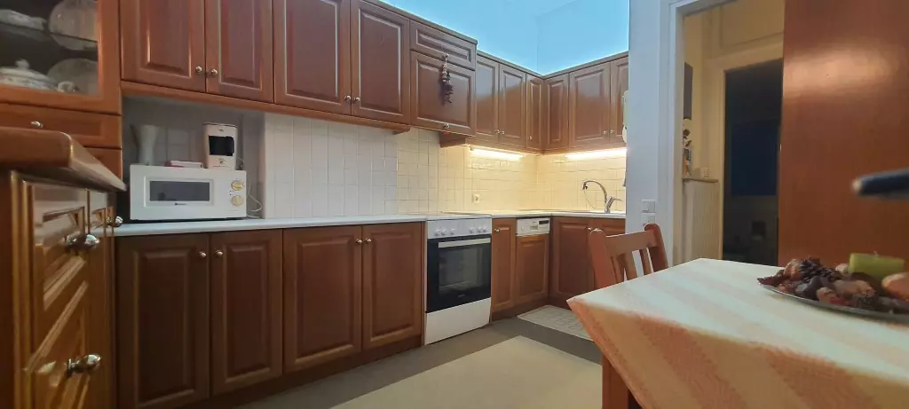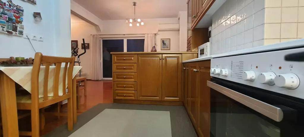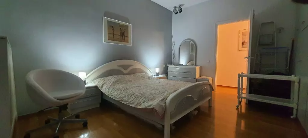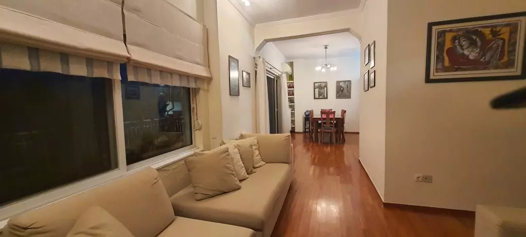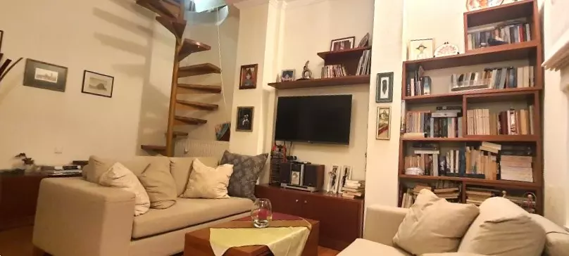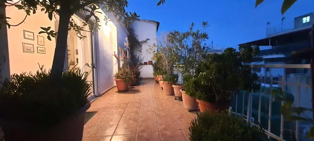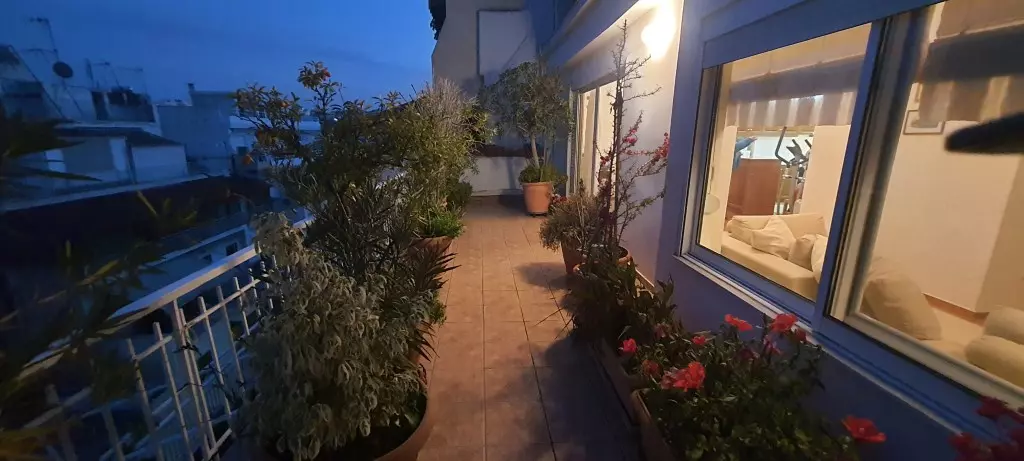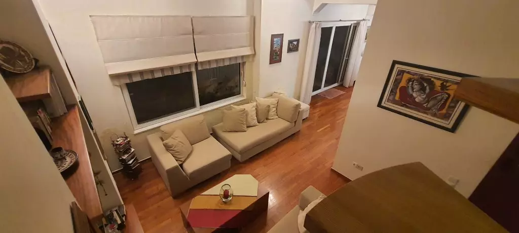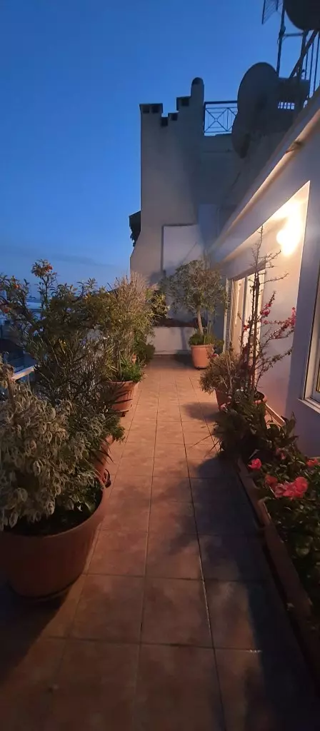 115 sq m. apartment, fully functional maisonette on the 5th floor (the building has an elevator) on two levels five minutes from the Maritime Museum, Marina Zea, Tzaneio General Hospital of Piraeus. It is ideal for those who wish to live or work in one place with direct access to everything. Suitable for both private residence and professional use, this is a rare opportunity for those looking for a space with character, prospects and a privileged location, it is east-facing with open and unobstructed views. The apartment is bright on the facade with large eastern openings and with an exit to a terrace / balcony of 25 sq m. On the first level and with your entrance, from the security door, you are in the open-plan living / dining area. On the left side of the space is a series of single window & balcony door openings, aluminum with double glazing, with screens and sliding external leaves of 7 sq.m. You continue to the open-plan kitchen area with full built-in electrical cabinets for food storage and storage of small equipment, there are many appliances. A series of good quality and ergonomics, made of walnut wood. Then the hallway leads us to two bedrooms with built-in ten-leaf melamine wardrobe and balcony door to the rear balcony and finally to the fully equipped bathroom with bench and window to the outside. On the second level we are led by an internal wooden staircase to the Attic area of 23 sq.m. with east orientation and opening of aluminum window, thermally insulated, superimposed operation and double glazing (with the possibility for the new owner to convert it into a balcony door with access to a terrace for exclusive use). The floors of the apartment are oak parquet. The equipment of the property includes four air conditioning units (3 pieces 9000 btu & 1 piece 18000 btu). The additional household appliances that you offer with the sale of the apartment are: Dining room (table & six chairs), Kitchen table and corresponding four seats, Lounger, Two-seater sofa and Coffee table. Heating is achieved by a central oil burner system with a room thermostat for starting and ending operation. There is the possibility of complete autonomy of the apartment with the connection and use of natural gas.