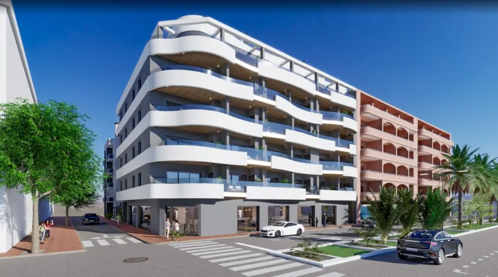 New penthouses near the sea in TorreviejaNew penthouses in a residential complex just 150 meters from the sea and the beach. Apartments with 2 or 3 bedrooms, 2 bathrooms, living room, kitchen, private solárium, terrace and swiming pool. Optional: parking and storage.The residential complex is located in Torrevieja, next to one of the city’s best beaches. Nearby you will find a variety of shops, supermarkets, pharmacy, banks and a huge choice of restaurants and bars. Location is excellent, both for permanent residence or for holiday.Only a few minutes walk away you will reach beautiful sandy beaches, the city center, parks and other activities.Torrevieja is a tourist city in the south of the Costa Blanca, a popular place for recreation and life for the inhabitants of northern Europe. Here you will find the mild Mediterranean climate and more than 320 days a year the sun shines.