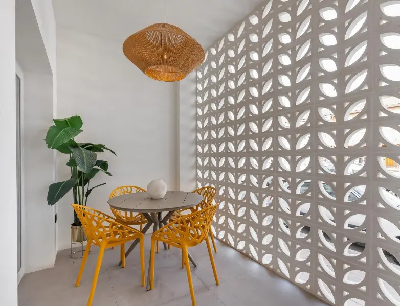 Each apartment boasts a layout that includes one bedroom and one bathroom, making it suitable for individuals or couples. The open plan kitchen is equipped with appliances, allowing for efficient cooking and meal preparation. The dining room leads out to a terrace, perfect for enjoying the outdoors.