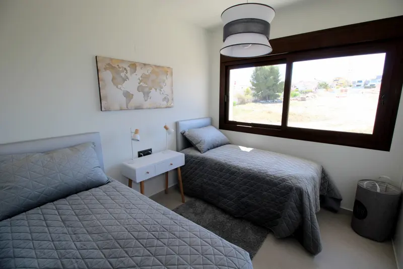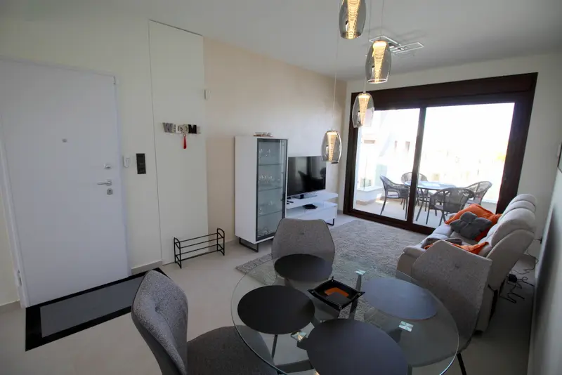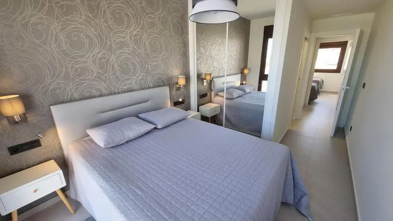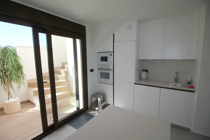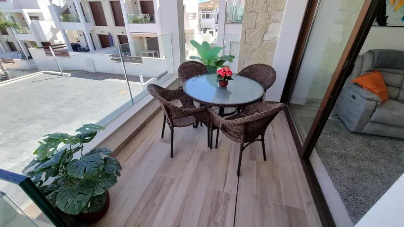 TOP BUNGALOW FOR SALE IN THE BALCONES DE AMAY RESIDENTIAL OF LOS BALCONESWe have a top floor bungalow for sale in the BALCONES DE AMAY Residential, Los Balcones, Torrevieja. The house total 63 m2 has large solarium with nice view of the area. The property has 2 bedrooms with fitted wardrobes, 2 bathrooms, open kitchen and living room. This bungalow overlooks the community garden and green areas. This house fully furnished and ready to move into. It has large and green common areas with swimming pool and gardens. It is located about 4 kilometres from the sea and close to many services.Urbanization Los Balcones is located near the center of Torrevieja and, at the same time, a few kilometres from the beaches of Orihuela Costa, which are marked with the blue flags of the European international organization for the cleaning of coastal waters and the excellent equipment of beaches. Los Balcones is a magnificent place to spend summer or winter vacations, as well as to live all year. Due to the fact that this area has a well-developed internal infrastructure, it is wonderful to live here all year or spend time during the holidays. A few minutes by car there is one of the best golf courses in Spain – VILLAMARTÍN golf course.