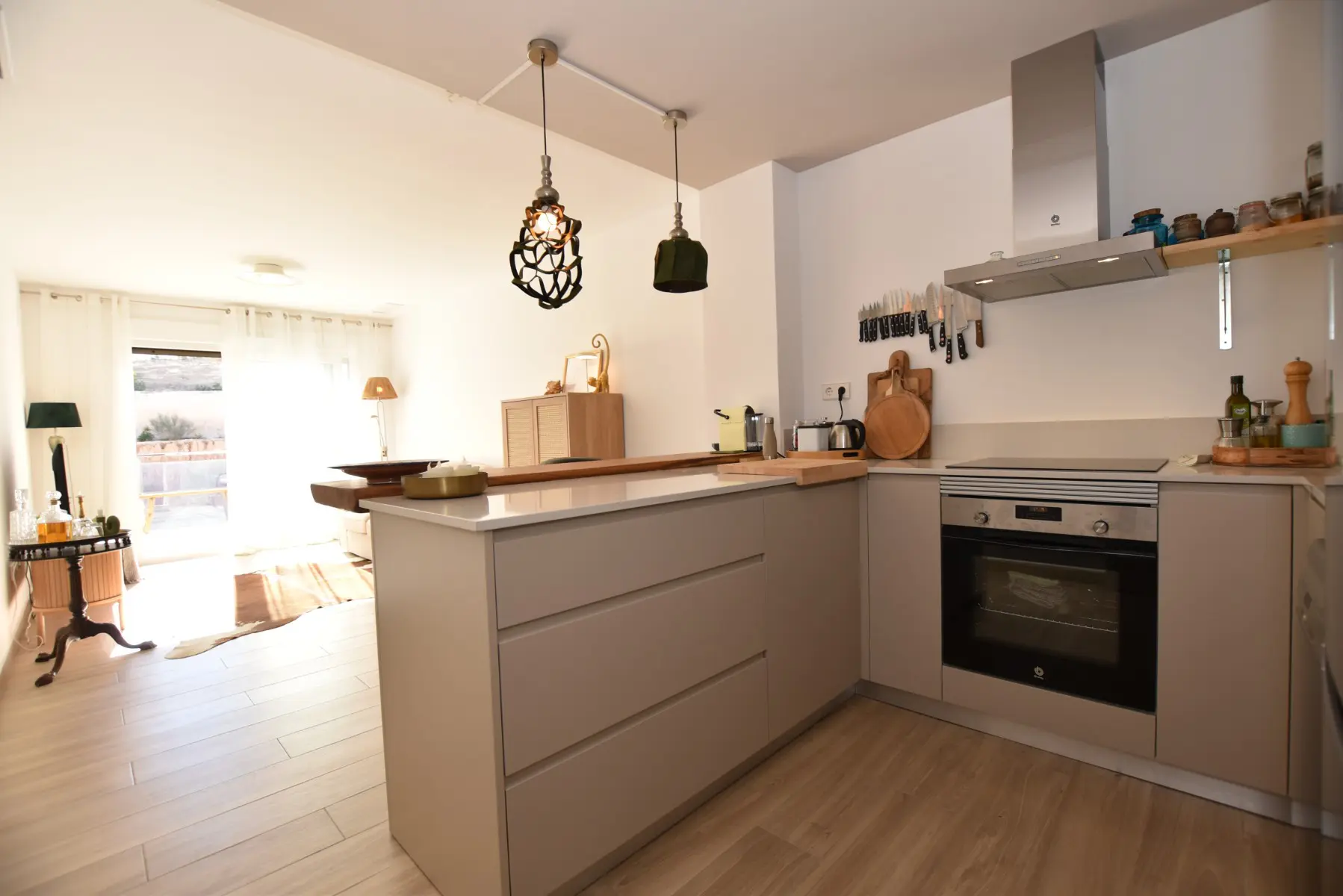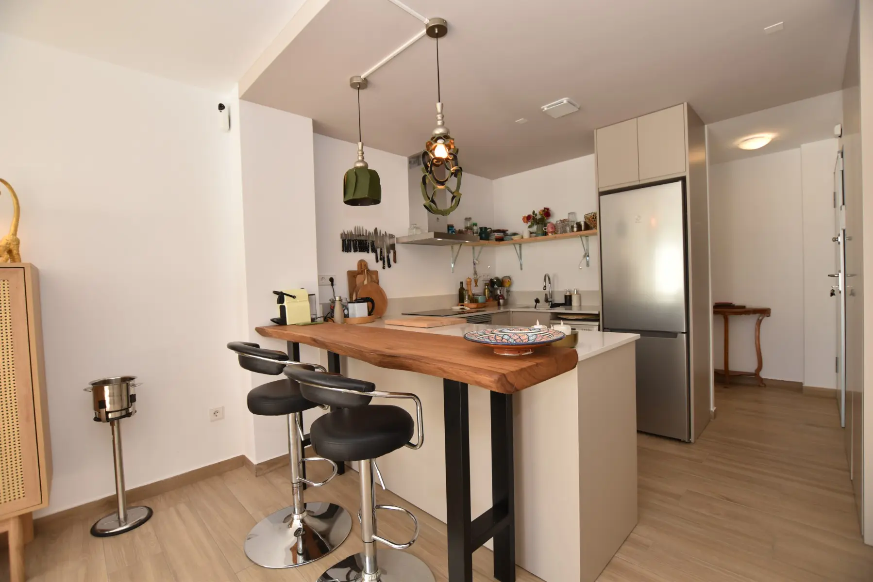 It features 2 bedrooms, 2 bathrooms, a bright open-plan living room with kitchen, a terrace and a spacious private rooftop solarium — perfect for relaxing and enjoying the weather.