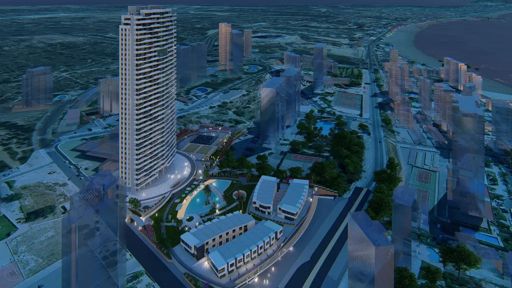 New build glass tower has 220 apartments with spacious terraces with sea views. Ideal property to enjoy the fantastic climate of the Costa Blanca coast. It is an ideal residential for all types of public. For sale apartment of 2,3,4 bedrooms Benidorm – is the popular resort in Spain, popular city of entertainment in Alicante. But still you will find calm, pleasant atmosphere and comfortable life in this area. Nearby you will find shops, supermarkets, banks, restaurants, schools. But if you want entertainment, then just a few minutes away golf, theme parks, casinos, shopping malls, water parks, discos, beaches with water sports and more.
