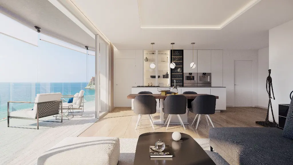 This ultramodern new development is located on the beachfront on the Costa Blanca, a few minutes from the city of Alicante, with connections to the rest of Europe. Apartments for sale with 2 to 3 bedrooms are distributed over 22 floors and all enjoy views of the sea and have terraces. These are very bright homes, with open spaces, large windows and high quality materials. . They also include a parking space with electric charger and a storage room.As for the common areas, this development offers exceptional facilities. It has exclusive garden areas with a padel tennis court and infinity pool, which merges with the sea view.The building is located on the seafront on beach in Benidorm, an exclusive and very peaceful area bordered by an exquisite beach of fine white sand.The Costa Blanca, with excellent connection both by AVE and by various airlines from many destinations, offers heavenly beaches in the Valencian Community, as well as many other attractions and tourist spots, such as Alicante, Altea, Alfaz del Pi, Finestrat and Villajoyosa. Also, the area is surrounded by services such as spectacular theme parks and leisure venues, nightclubs and restaurants where you can enjoy the local cuisine and nightlife.