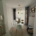 The living room serves as a central gathering area in this apartment. Directly accessible from the living room is a terrace that provides views of the city port. This feature adds a nice touch to your living experience, allowing for outdoor relaxation. Additionally, a spiral staircase from the living room leads up to the roof, which has a solarium that offers panoramic views of the sea, the city, and a nearby park.