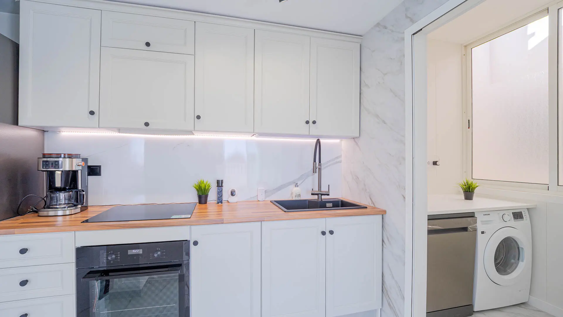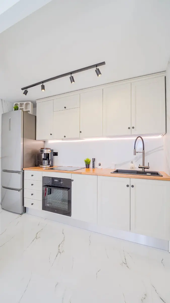 This apartment is designed with functionality in mind. One of the standout elements is the fitted wardrobes, providing ample storage to keep your living space organized. The open kitchen is outfitted with appliances from reputable brands such as LG and Samsung. This setup can ease meal preparation whether you are an occasional cook or someone who enjoys preparing daily meals.