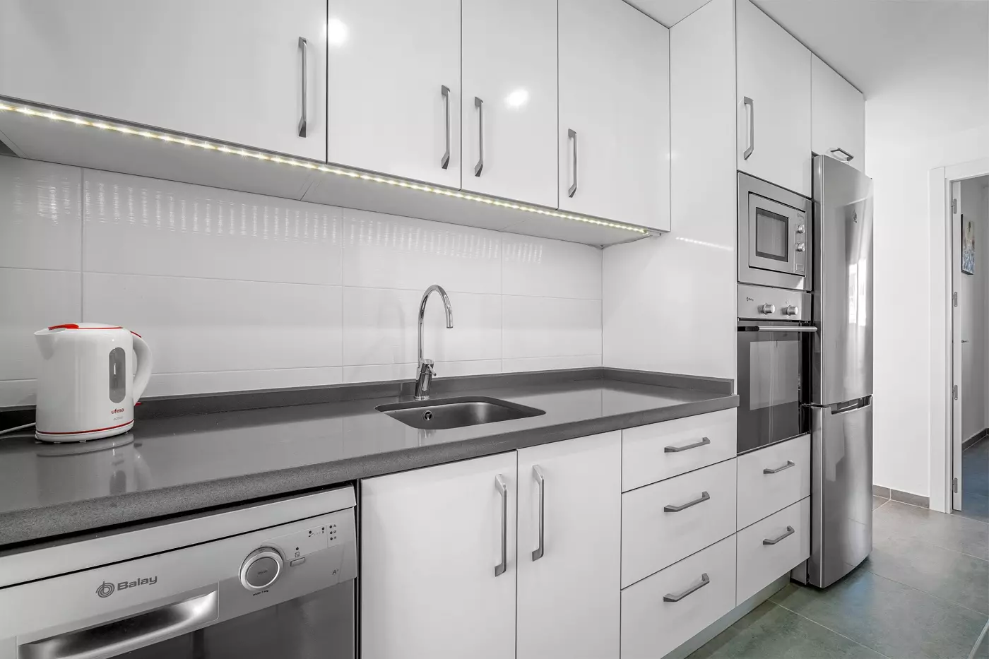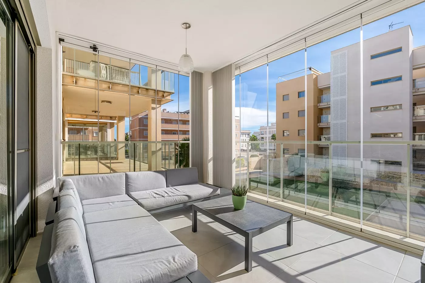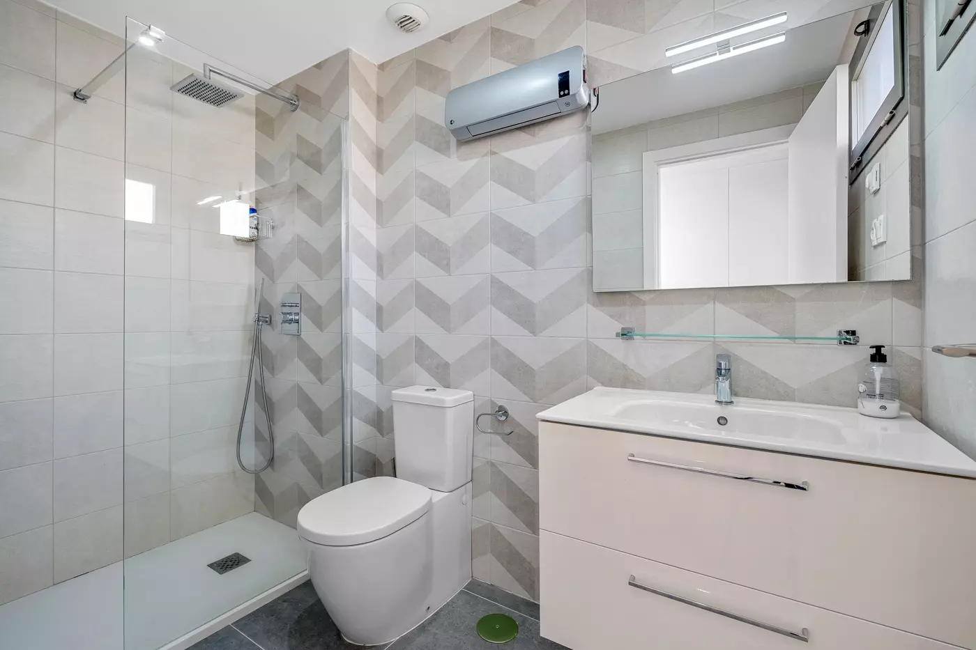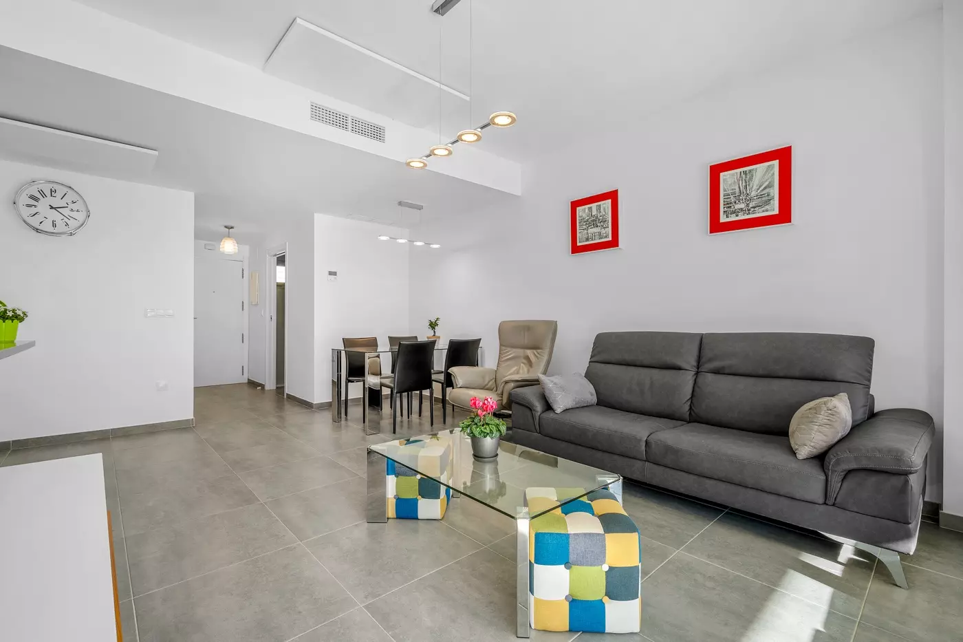 Explore this furnished 2 bedroom, 2 bathroom apartment located in the sought-after Villamartin Gardens community. The master bedroom features an ensuite bathroom with a walk-in shower, a built-in wardrobe, and direct access to the terrace.