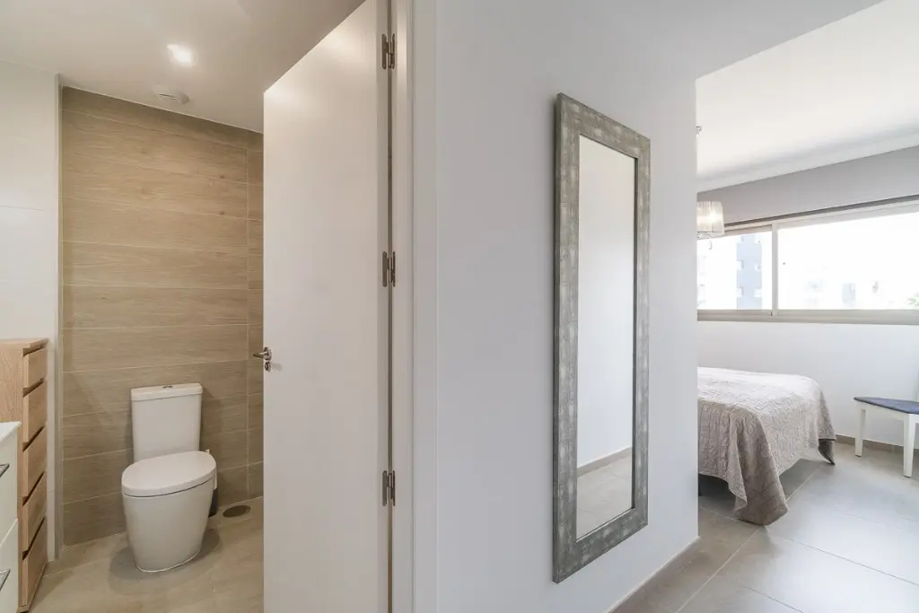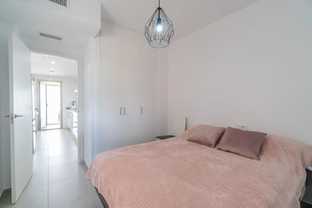 This apartment covers a built area of 71 m2 and includes 2 bedrooms and 2 bathrooms. You’ll find a living-dining room, kitchen, and an open terrace as part of this layout. The property stands out with its large terrace that offers views of the Mediterranean Sea, along with the community garden, which features two swimming pool areas. The master bedroom also has access to a private balcony that overlooks the residential pool.