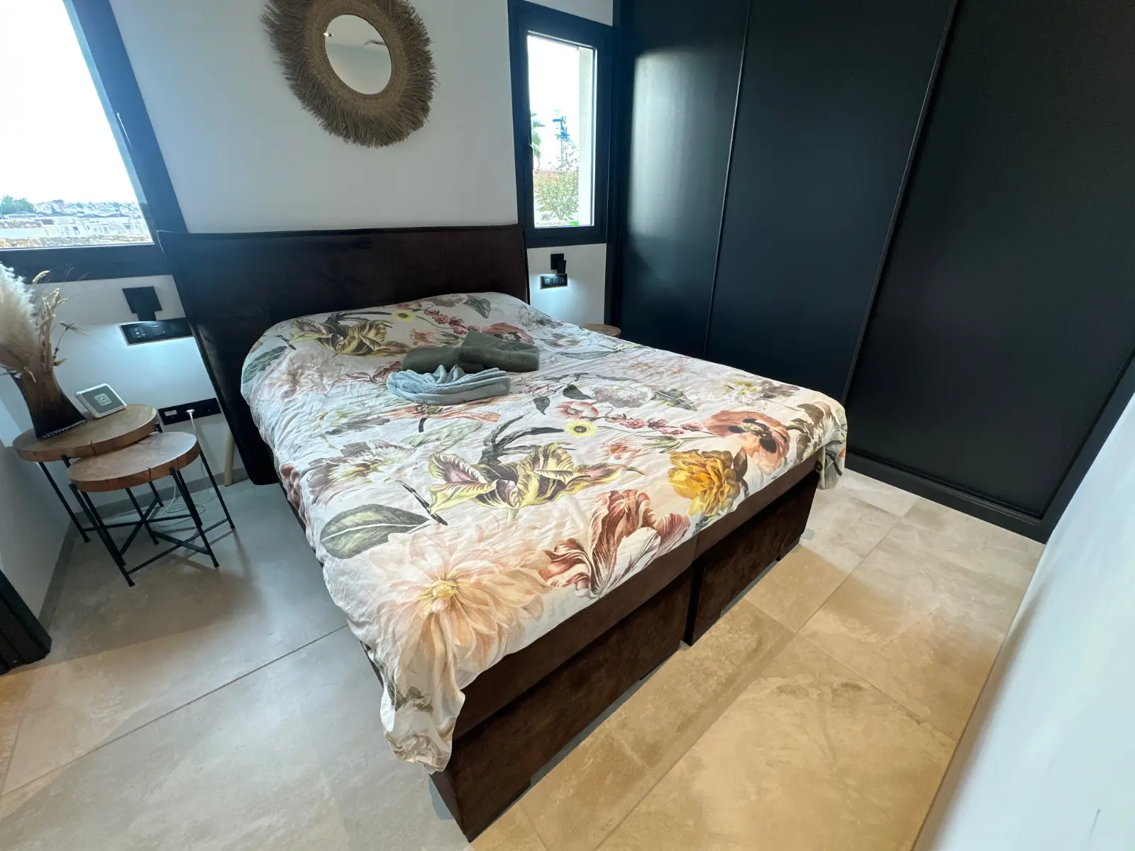 Next to the living room, there’s a large terrace. This outdoor space allows for a variety of activities such as morning coffee or evening meals while enjoying the fresh air.