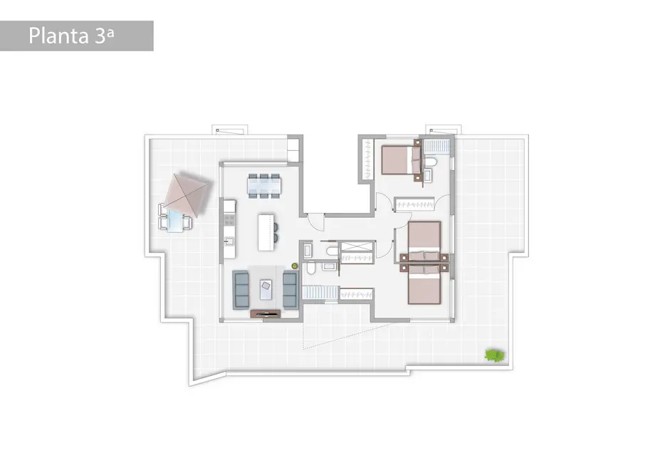 The apartments are designed with a minimalist approach and adhere to high quality standards. Each unit includes three bedrooms and two bathrooms. Residents will also find an open kitchen that flows into a spacious living room, making it ideal for social gatherings or family time. Additionally, every apartment comes with a terrace, allowing for outdoor relaxation.