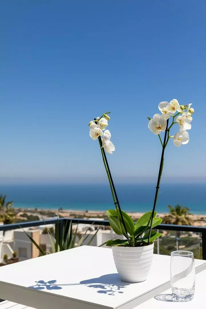 The development includes a selection of 2 and 3 bedroom apartments, each with 2 bathrooms. These units are designed with thoughtful layouts that maximize living space while providing views of the Mediterranean Sea. Residents can also enjoy taking in sights of the beach and the community pool from their homes.