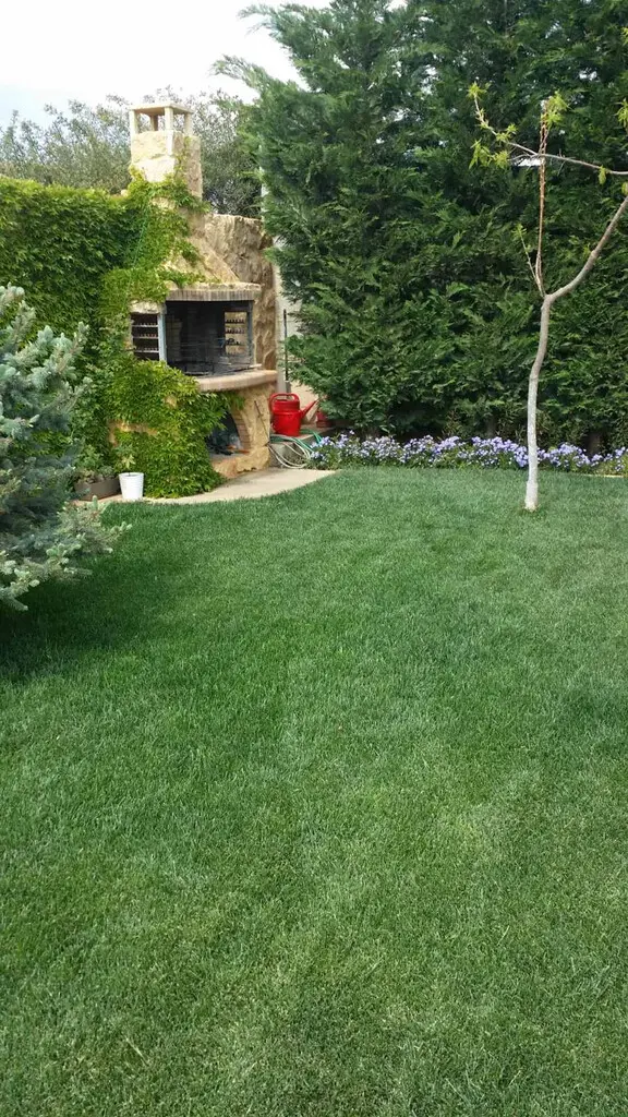 The villa includes several functional features such as solar panels for water heating, ensuring energy efficiency. Additionally, it has air conditioning, a fireplace for added comfort, and heating systems installed. For outdoor enjoyment, there is an area designated for barbecues. Awnings are also present to offer shade and weather protection. Security is enhanced with the presence of an alarm system.