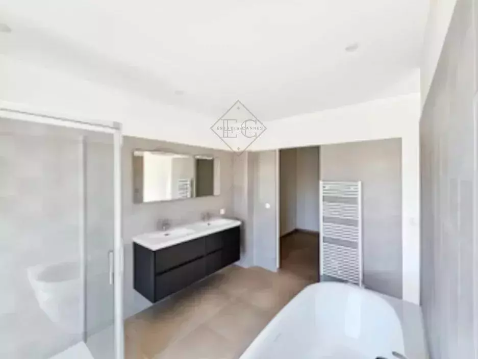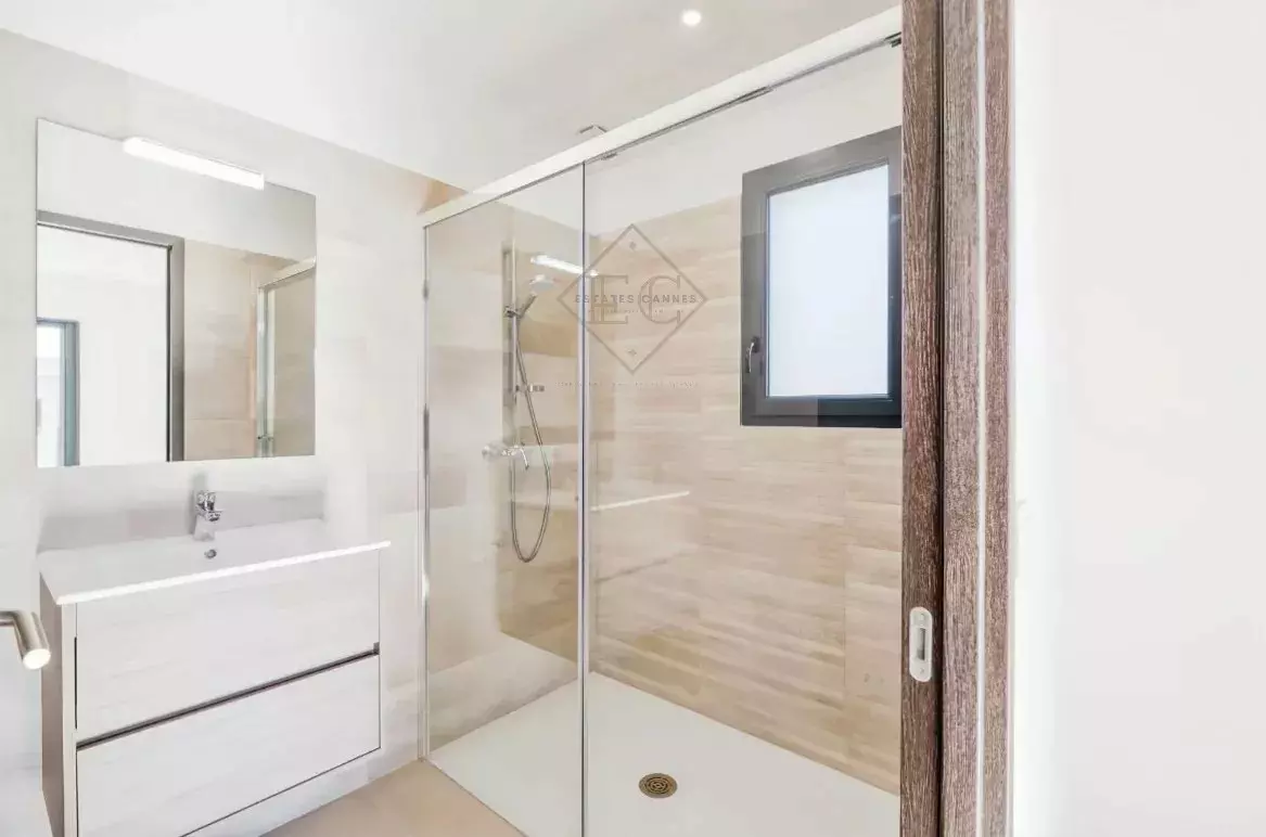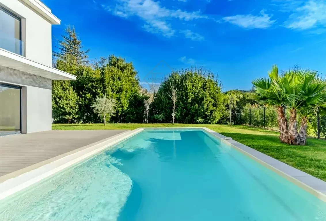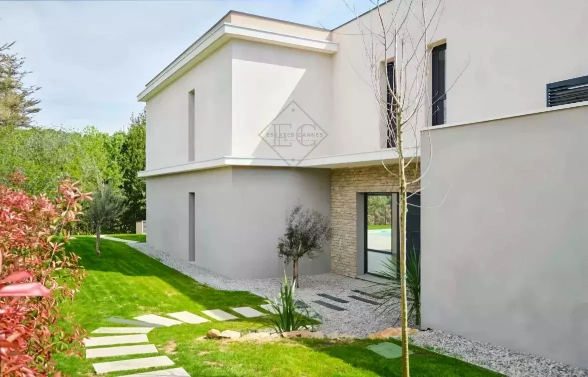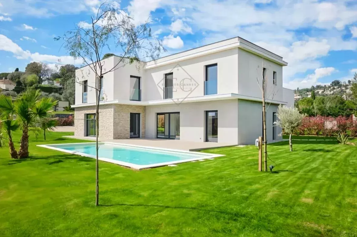 Located in the heart of Mougins, within walking distance of shops and the historic village, this newly built contemporary villa offers a practical and comfortable living environment.