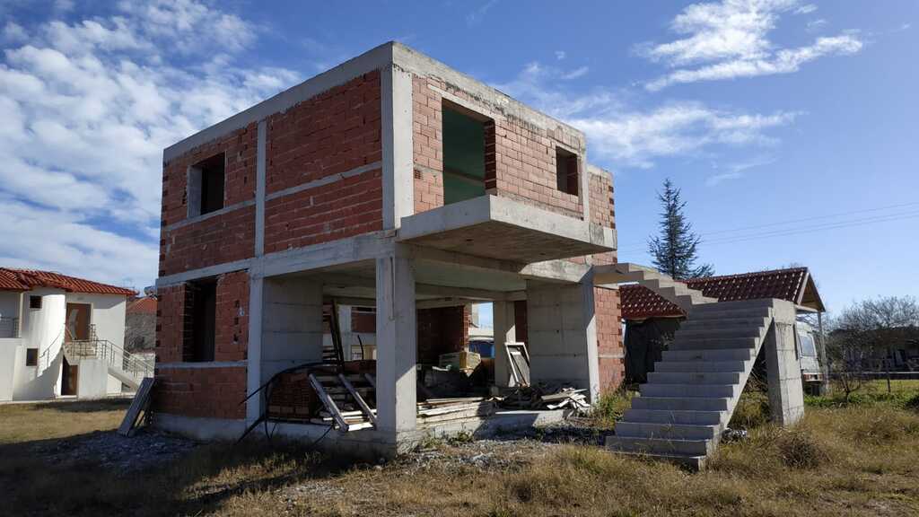 The first floor mirrors the layout of the ground floor, offering another two bedrooms, a living room with a kitchen, and an additional shower WC. This setup can be ideal for families or even for use as rental units.