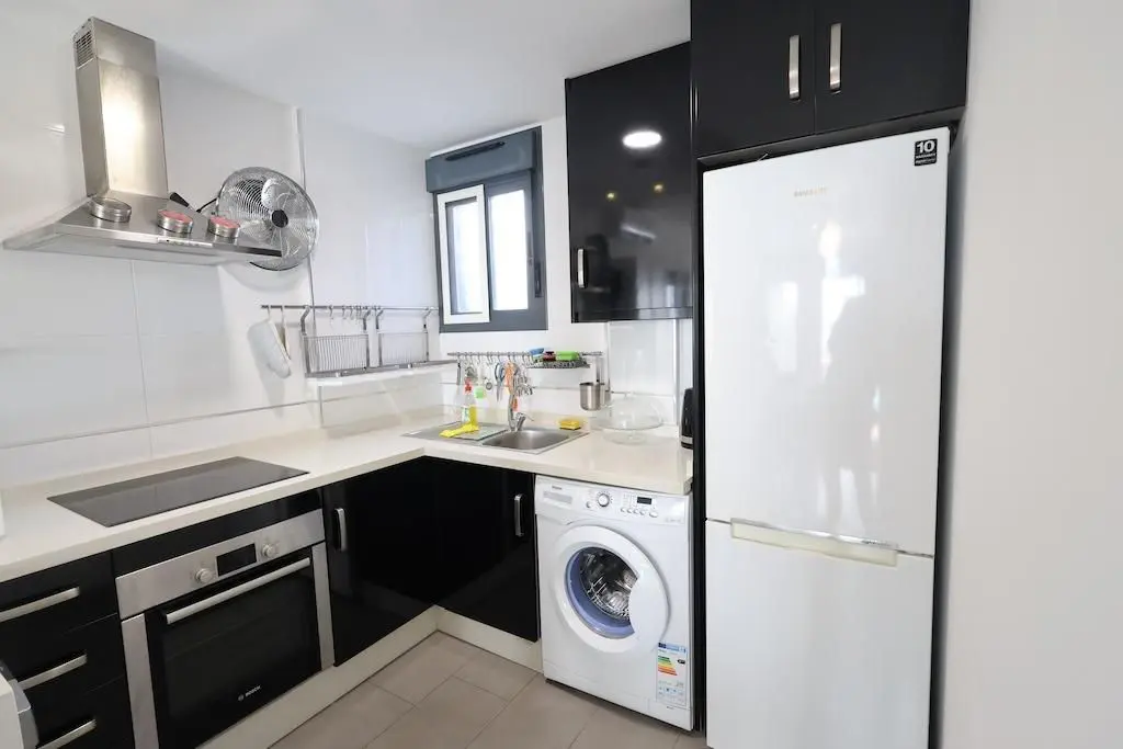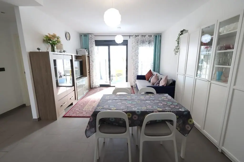 La Zenia, Oasis Beach II Residential. Ground-floor bungalow with South-East orientation, featuring 70 m2 of living space and a 13.50 m2 glazed terrace. The property offers 2 bedrooms, one of them en-suite, 2 bathrooms, and an open-plan kitchen connected to the living room. It is sold fully furnished and equipped with ducted air conditioning. The property also includes its own underground parking space. The residential complex boasts extensive landscaped areas, a beautiful swimming pool, a children’s play area, and more.