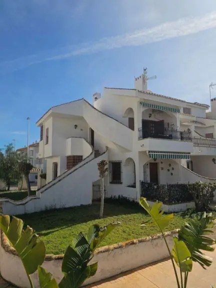 Discover your perfect oasis in this charming townhouse bungalow! Located on the first floor of an exclusive residential complex, this home combines comfort and style in an idyllic setting. With 70 m2 built and 67 m2 usable, it offers two cozy bedrooms with built-in wardrobes, a modern bathroom, and a functional kitchen. Enjoy warm afternoons on the terrace or balcony, perfect for relaxing. The terrace, on an upper level, can be transformed into a beautiful chillout area. This bungalow has been a popular tourist destination for the past decade, with a high occupancy rate and a loyal clientele who return year after year. You can also enjoy an exclusive pool for owners and tenants, ensuring moments of fun and relaxation. Although it is a second-hand property, it is in good condition, ready to move in or continue exploiting its tourist potential. The north, east, and west orientation ensures natural light throughout the day, creating a warm and welcoming atmosphere. Its efficient design and location in a privileged environment make it a unique opportunity. Don’t miss the chance to be part of this vibrant community and enjoy everything this bungalow has to offer. Come visit and fall in love!