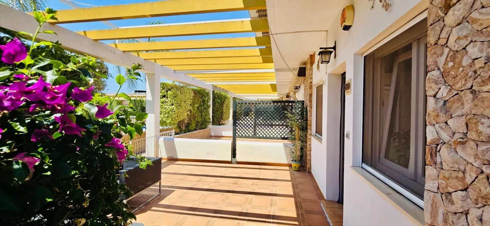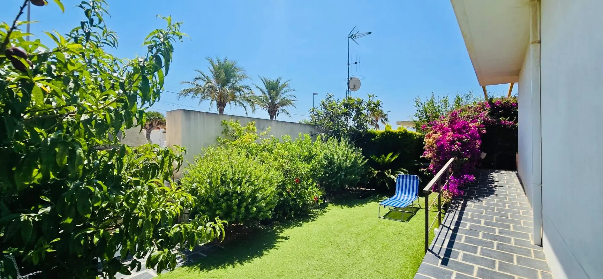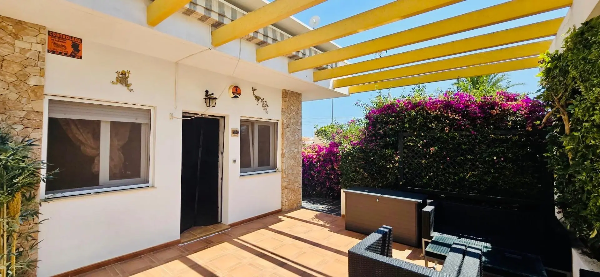 With 80 m2 of built area (70 m2 usable) on a spacious 215 m2 plot, the property offers a functional layout and is in excellent condition. It features 2 bedrooms with built-in wardrobes, 1 full bathroom, an independent kitchen, and a bright living-dining room with direct access to the terrace and private garden – ideal for enjoying the Mediterranean climate all year round.