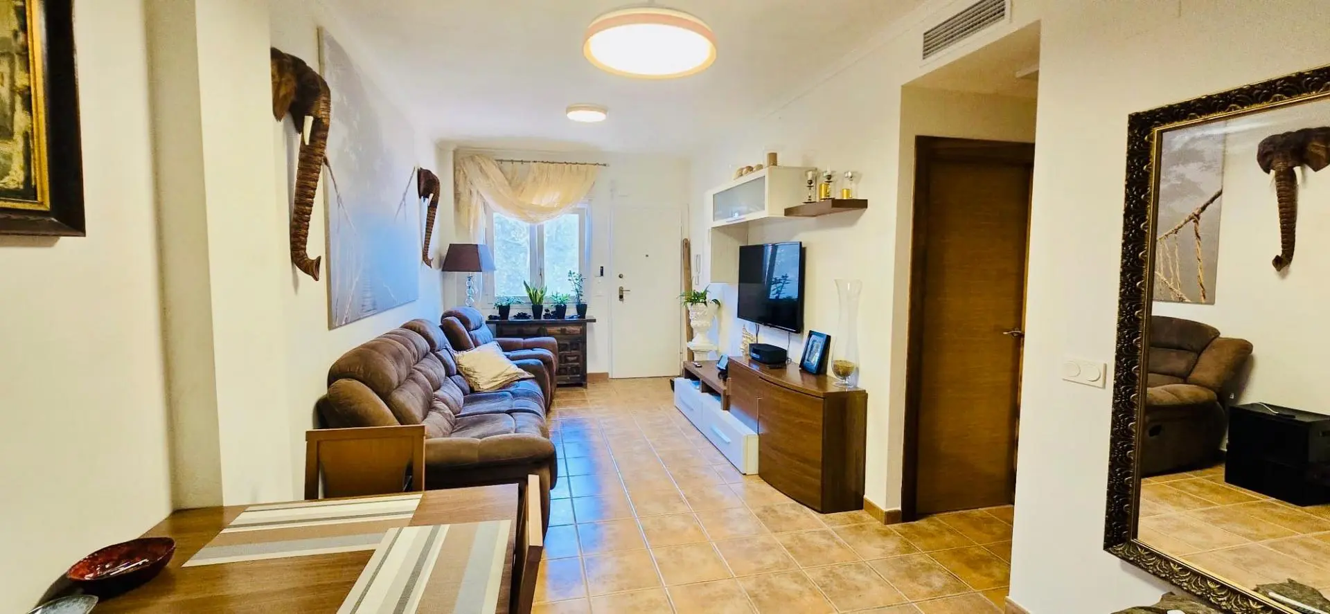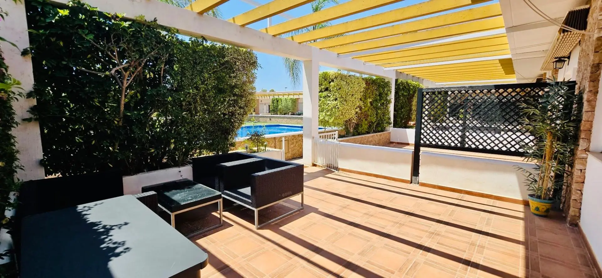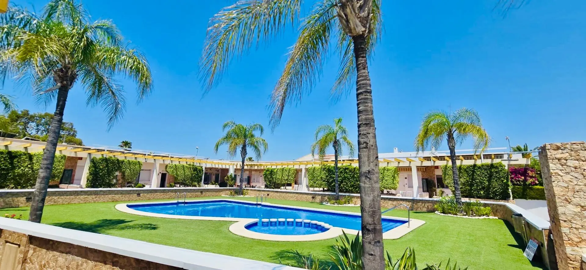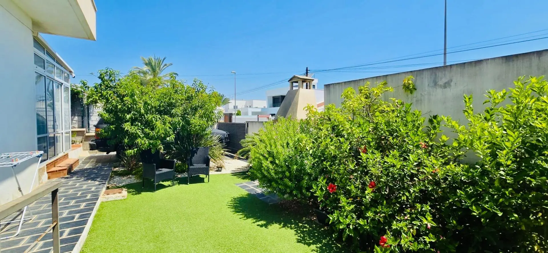With 80 m2 of built area (70 m2 usable) on a spacious 215 m2 plot, the property offers a functional layout and is in excellent condition. It features 2 bedrooms with built-in wardrobes, 1 full bathroom, an independent kitchen, and a bright living-dining room with direct access to the terrace and private garden – ideal for enjoying the Mediterranean climate all year round.