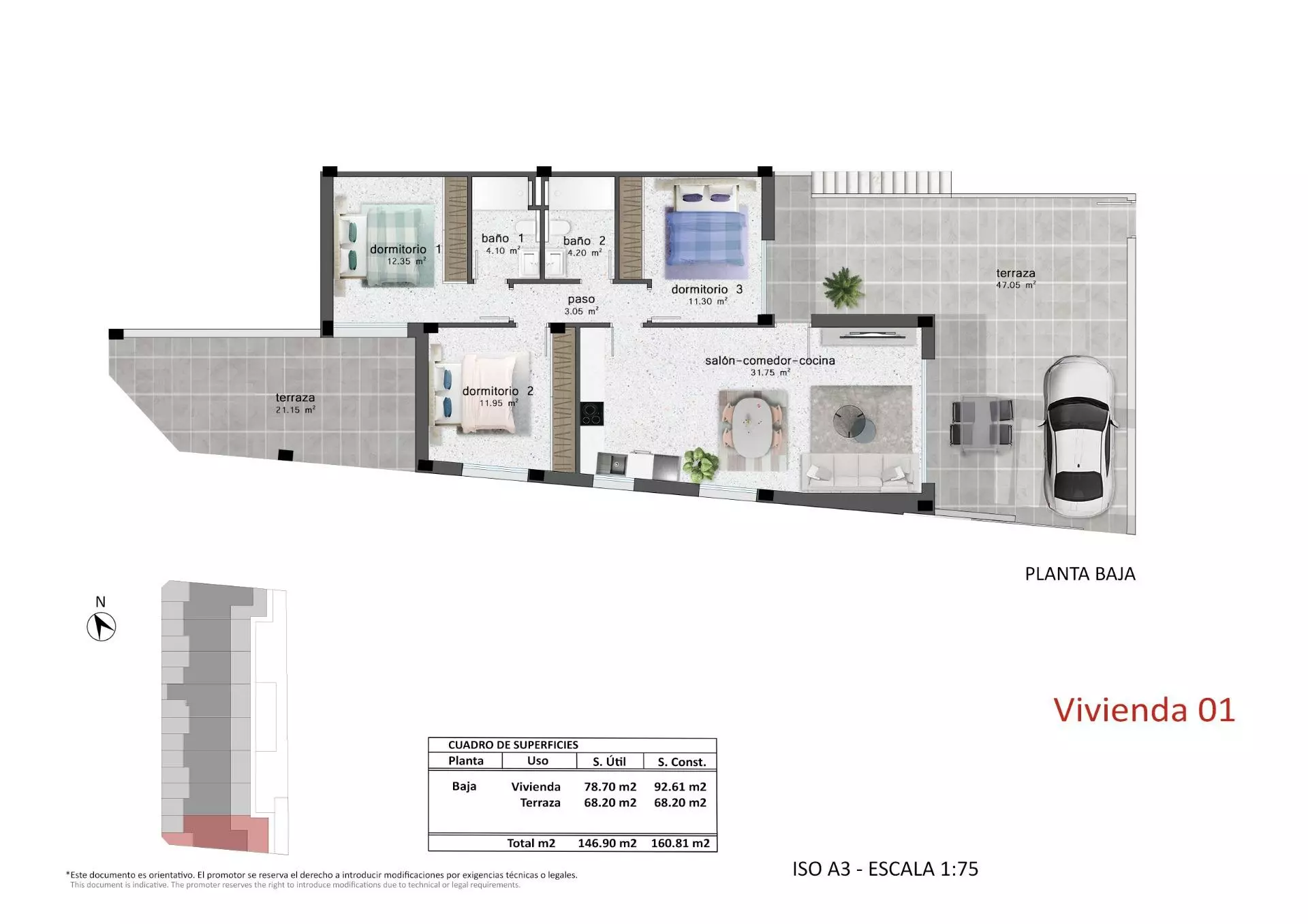 This new development offers 16 modern bungalows in the desirable town of Pilar de la Horadada, located in the southernmost part of Costa Blanca. You can choose between 2 or 3-bedroom options, each featuring 2 bathrooms. Ground-floor units come with spacious front and rear terraces, providing direct access to the communal pool and garden. Meanwhile, top-floor units boast a large private rooftop solarium.
