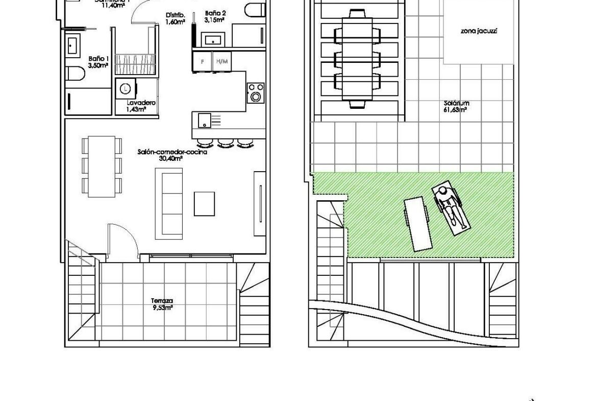 This new development of 2 and 3 bedroom bungalows in Pilar de la Horadada stands out for its modern design and undulating structure, which gives each home a unique personality.