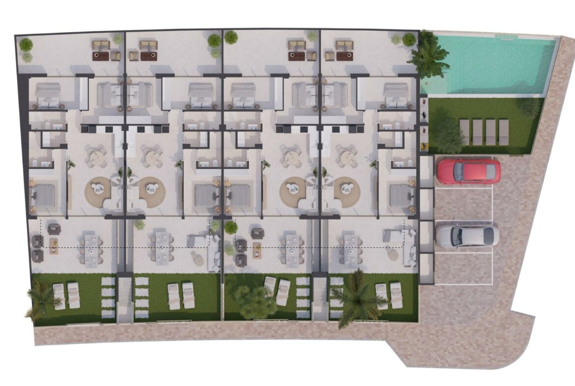 Welcome to a new residential complex featuring 8 bungalows in San Pedro del Pinatar, an attractive spot on the Costa Cálida. These homes provide space with 3 bedrooms and 2 bathrooms, along with an open-plan kitchen that connects seamlessly to the living area. Built-in wardrobes are included, and each unit has a private terrace.