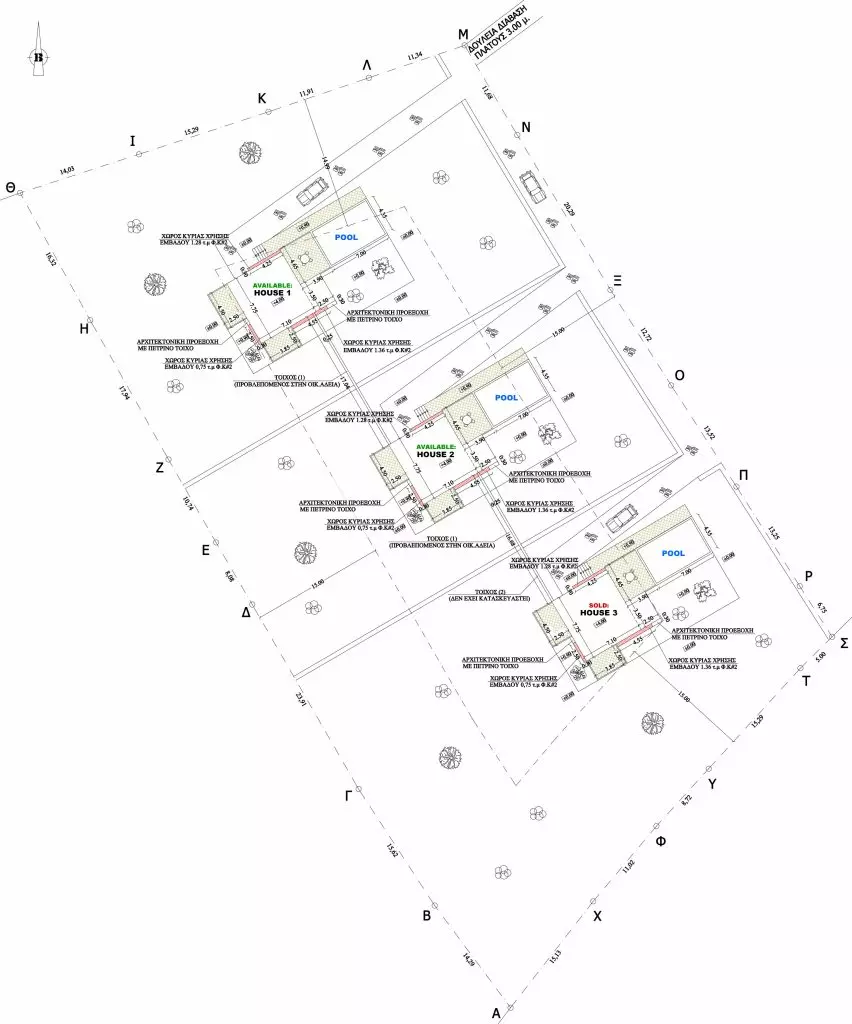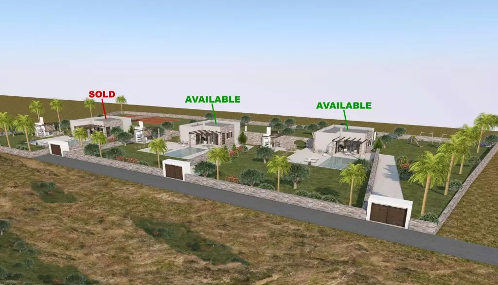 Residential complex, built on a plot of 4860 m², comprising 3 modern luxury bungalows (2 are still available, 1 has been sold), each with its own pool, pool bar, garden, BBQ area and private driveway.