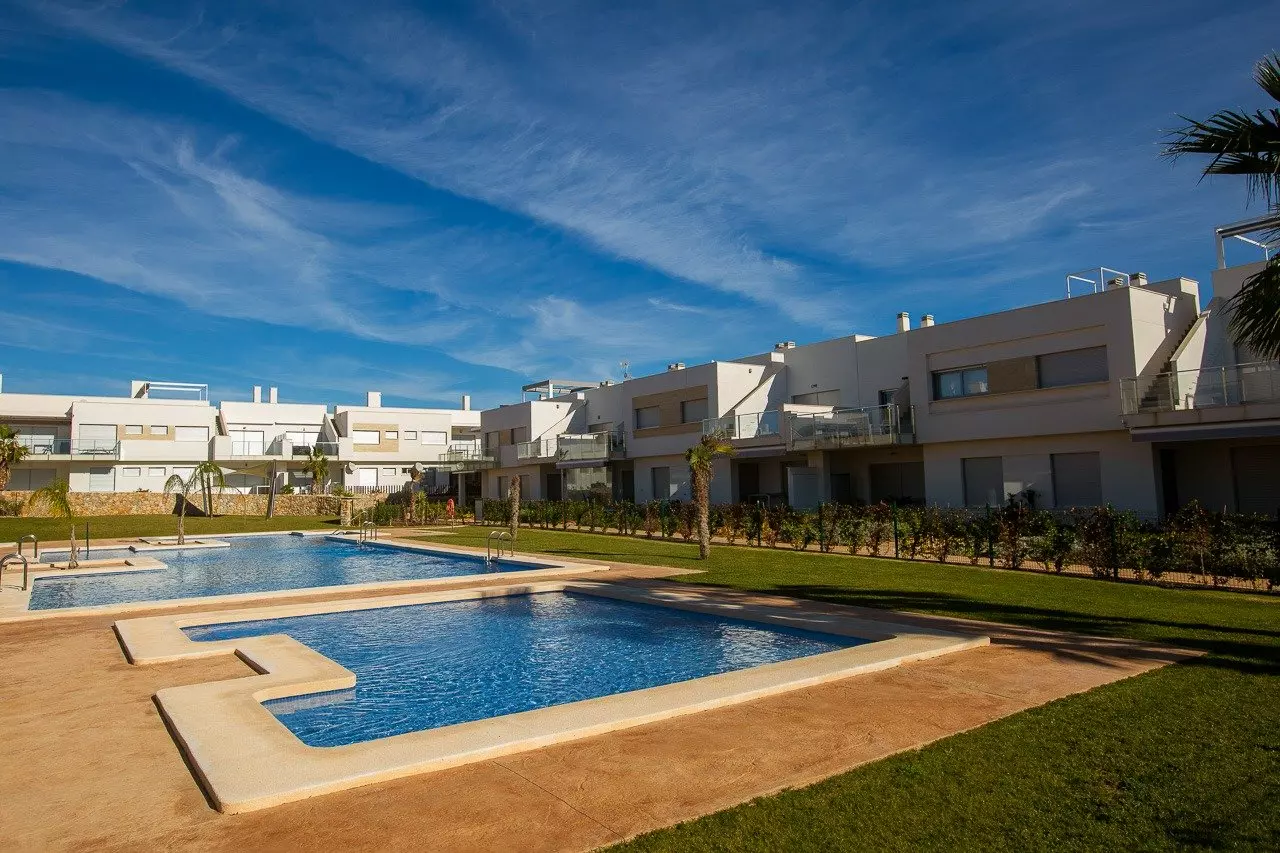 A new residential complex featuring bungalow apartments has been developed in Vistabella, conveniently located near a golf course. This complex offers a variety of communal facilities, including a swimming pool for residents to enjoy.