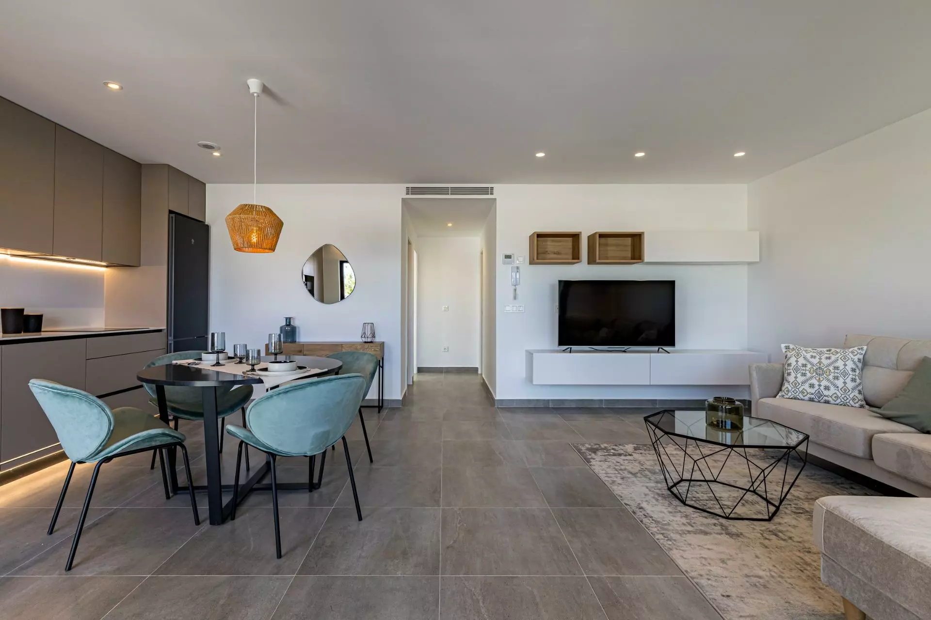 The modern bungalows offer two bedrooms and two bathrooms, alongside an open-plan kitchen that flows into the living area. Each unit comes equipped with fitted wardrobes for added storage.
