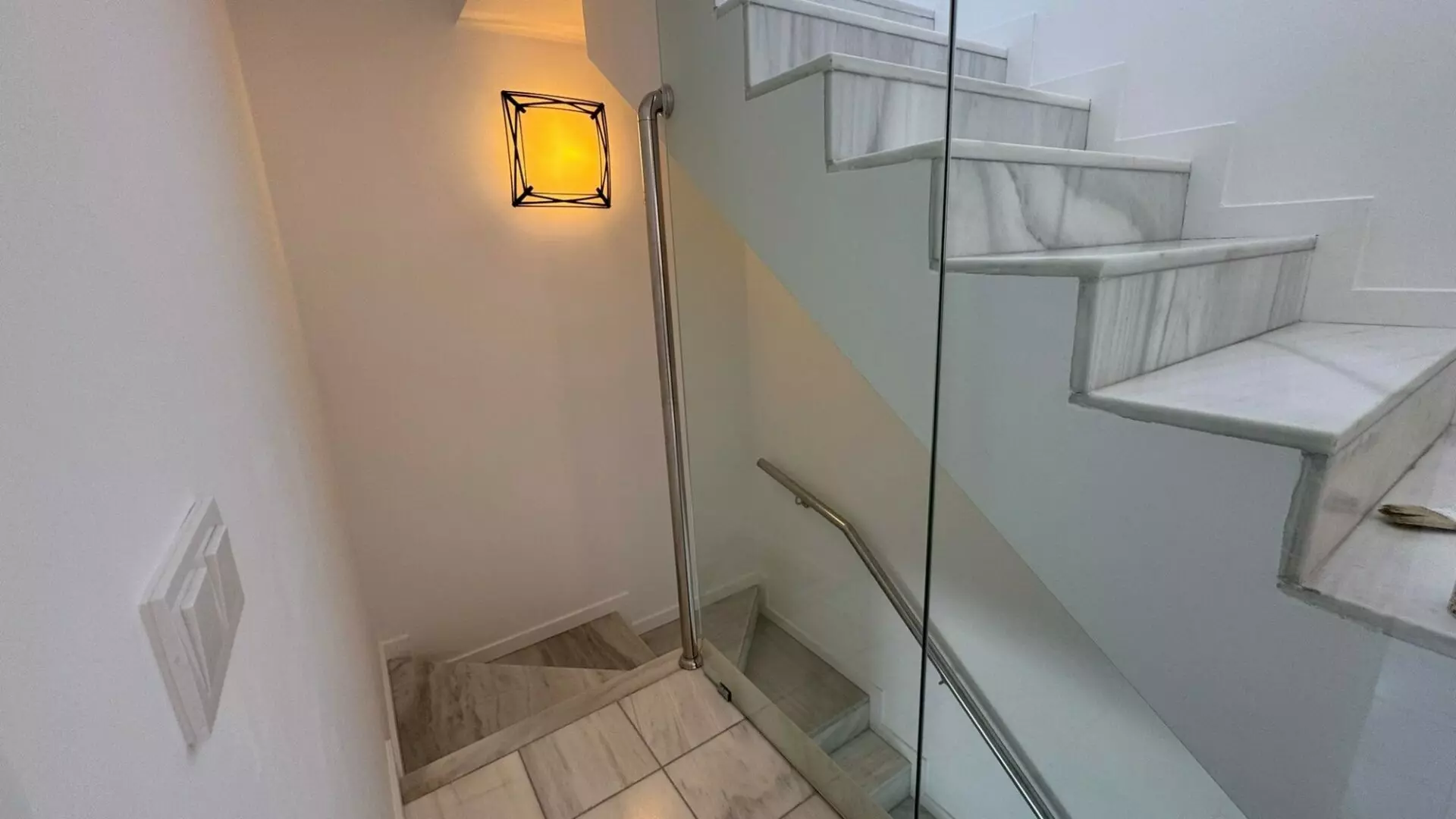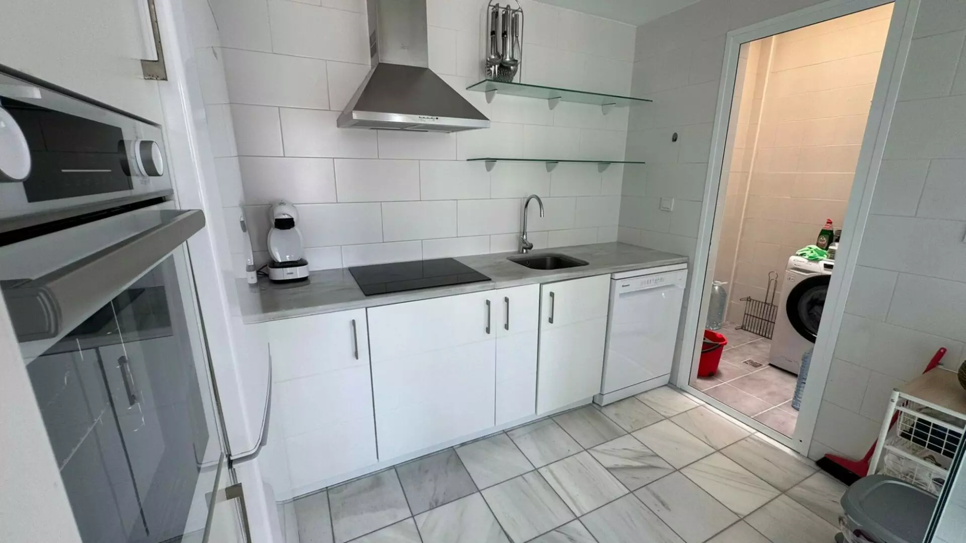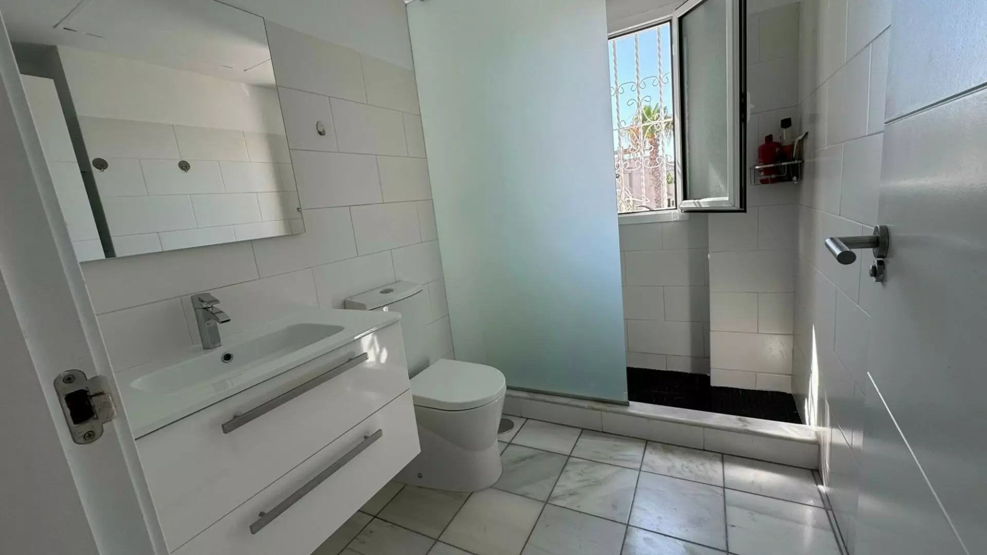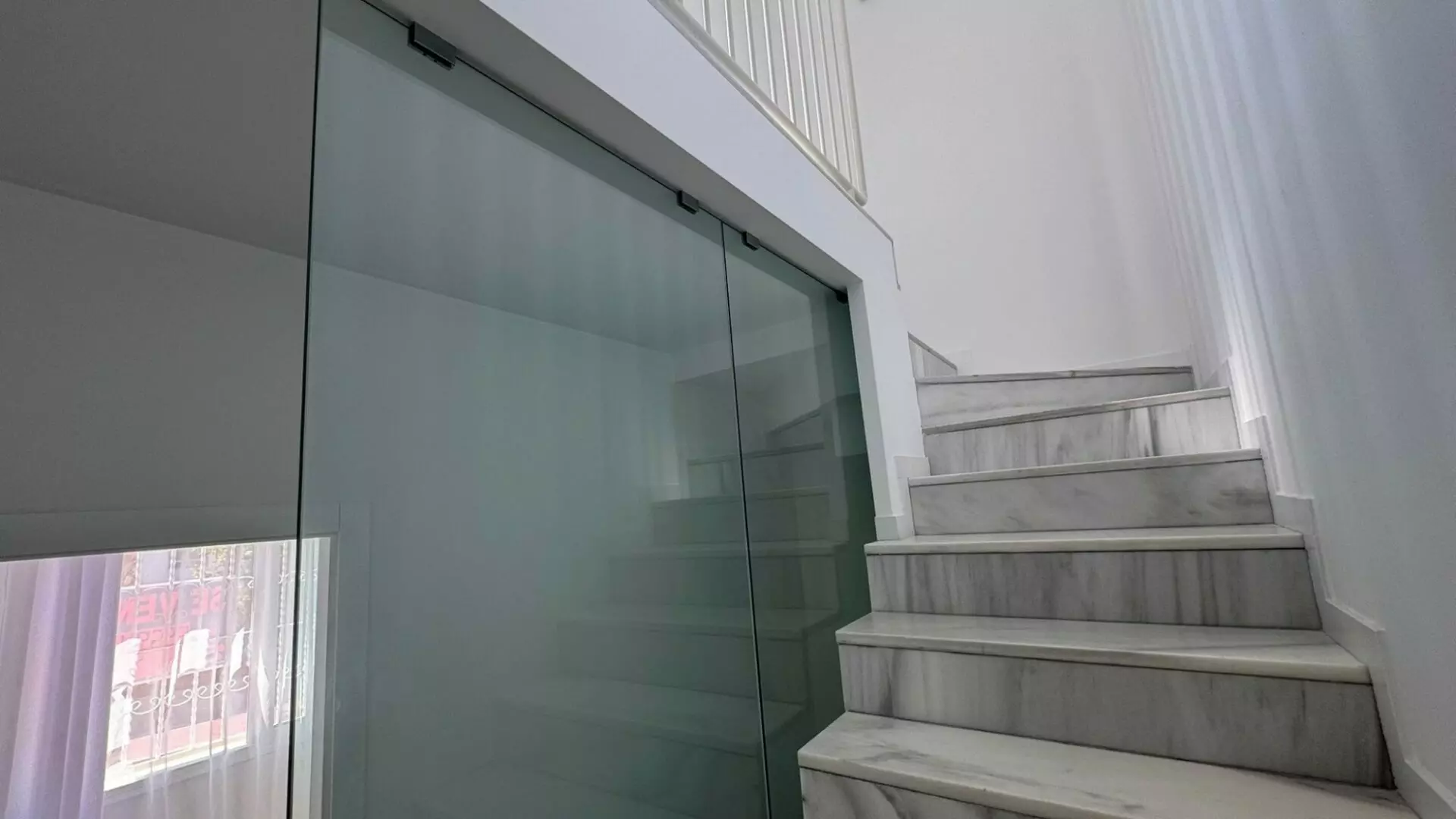 This home spans a constructed area of 76.72 m², with a usable space of 61.72 m². It features a two-story layout, effectively utilizing the space available. An elegant marble staircase connects the two levels, contributing to the home’s functionality. The main bathroom showcases a modern design, equipped with a marble shower tray and a glass screen. In addition, the property includes one bedroom along with a small storage room adjacent to the kitchen, maximizing utility.